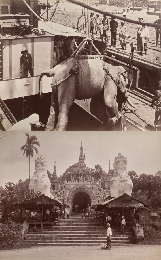 Ingeniously mounted to maximize the album page, this double-sided presentation showcases the albumen print's versatility in documenting both exotic scenes and architectural details.