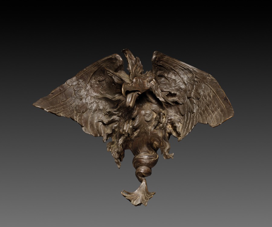 Cast in bronze with dynamic movement and intricate surface detail, this fantastical creature reflects the 19th-century revival of interest in medieval bestiaries and decorative arts.