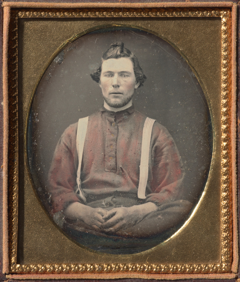 Exemplifying working-class portraiture in early American photography, this hand-colored daguerreotype dignifies manual labor while demonstrating the democratic potential of the new photographic medium.