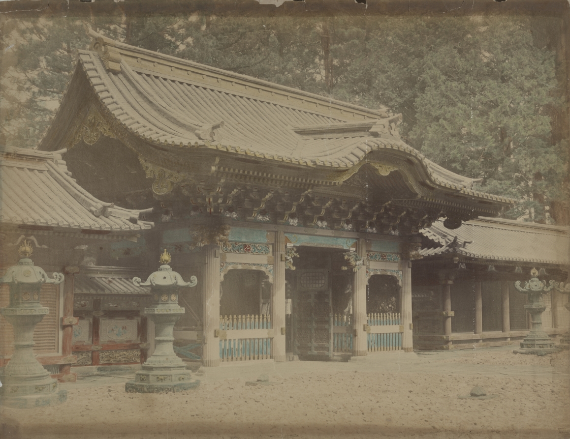 Combining albumen printing with delicate hand-coloring, this architectural study reflects Western fascination with Japanese culture during the Meiji period's opening to foreign visitors.