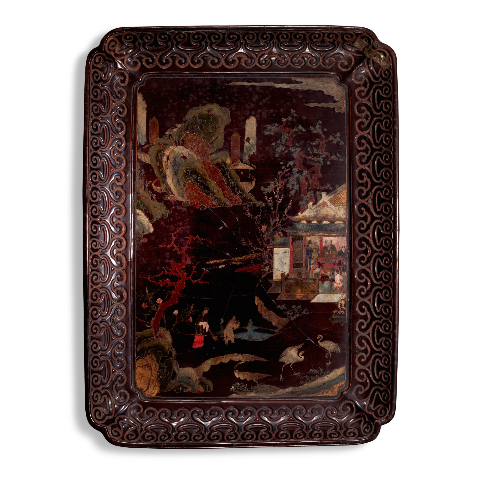 A large painted lacquer rectangular tray, Late Ming dynasty