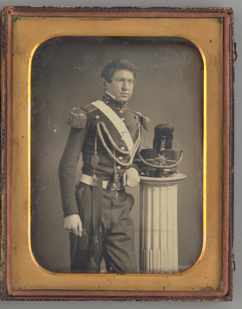 Representing the daguerreotype's capacity to confer status and permanence, this standing portrait reflects the medium's early adoption by the aspiring middle class.