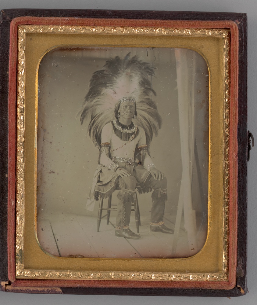 Unusual headwear distinguishes this portrait from typical mid-century masculine fashion, possibly indicating cultural, professional, or regional identity markers.