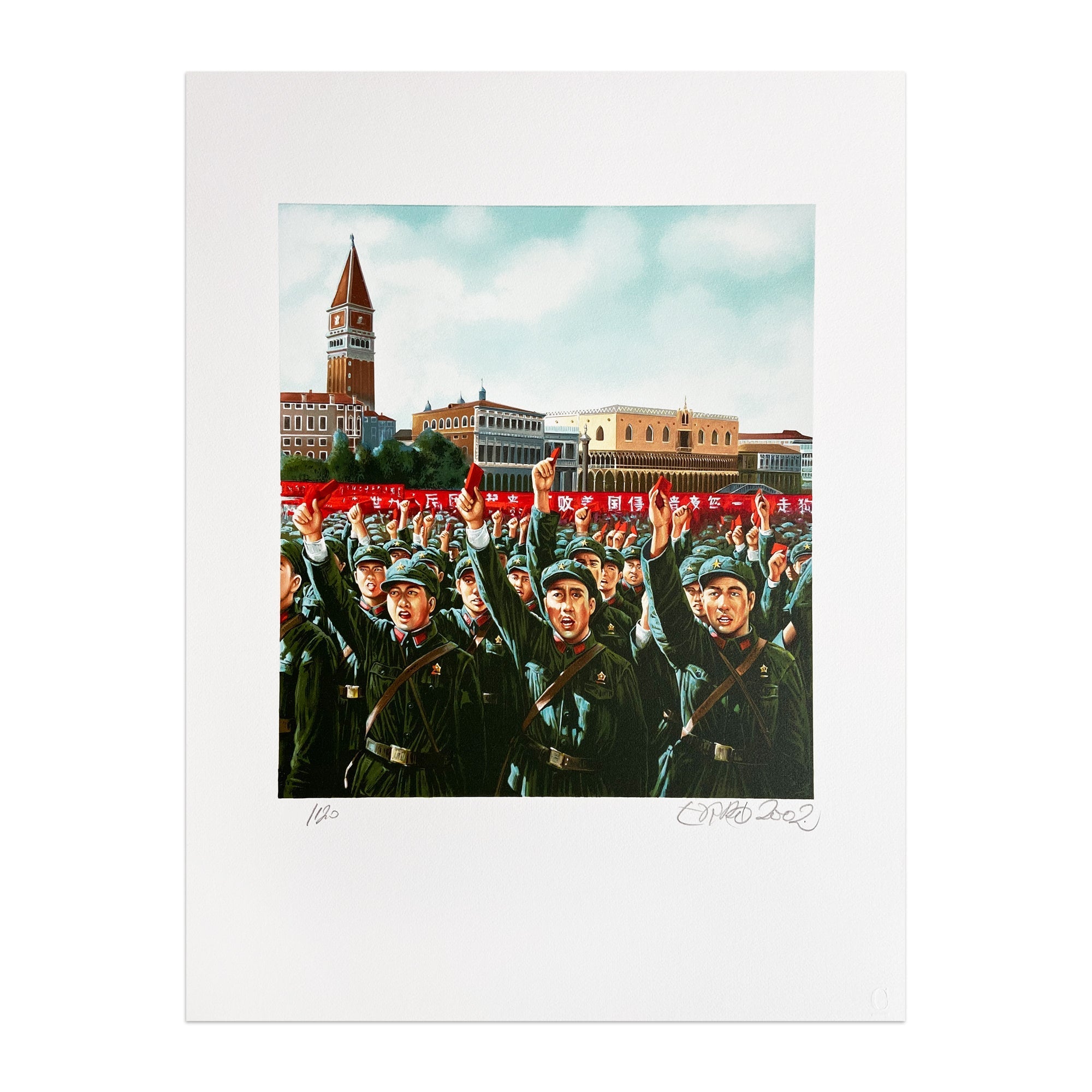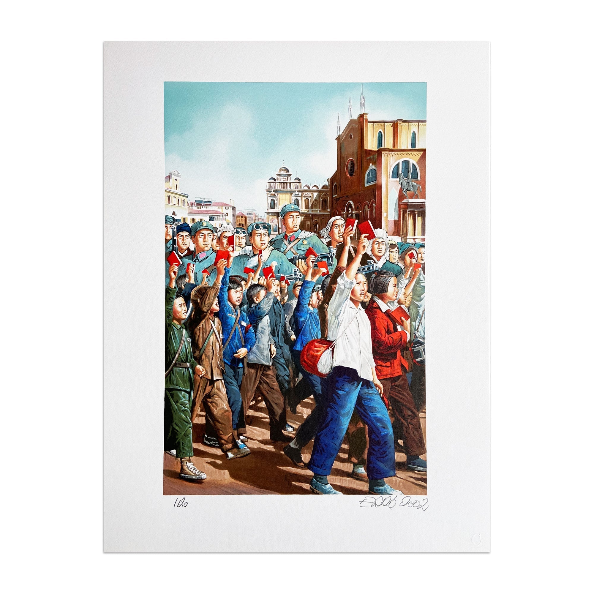 Gudmundur Gudmundsson, aka Erró (Icelandic, b. 1932) L’ultima visita di Mao a Venezia , 2002 Medium: Portfolio containing 12 lithographs in color, on paper (in red cloth folder) Image dimensions: each 42,5 x 32,5 cm Sheet dimensions: each 59 x 45 cm Edition of 120: All sheets hand-signed, dated and numbered Condition: Excellent condition