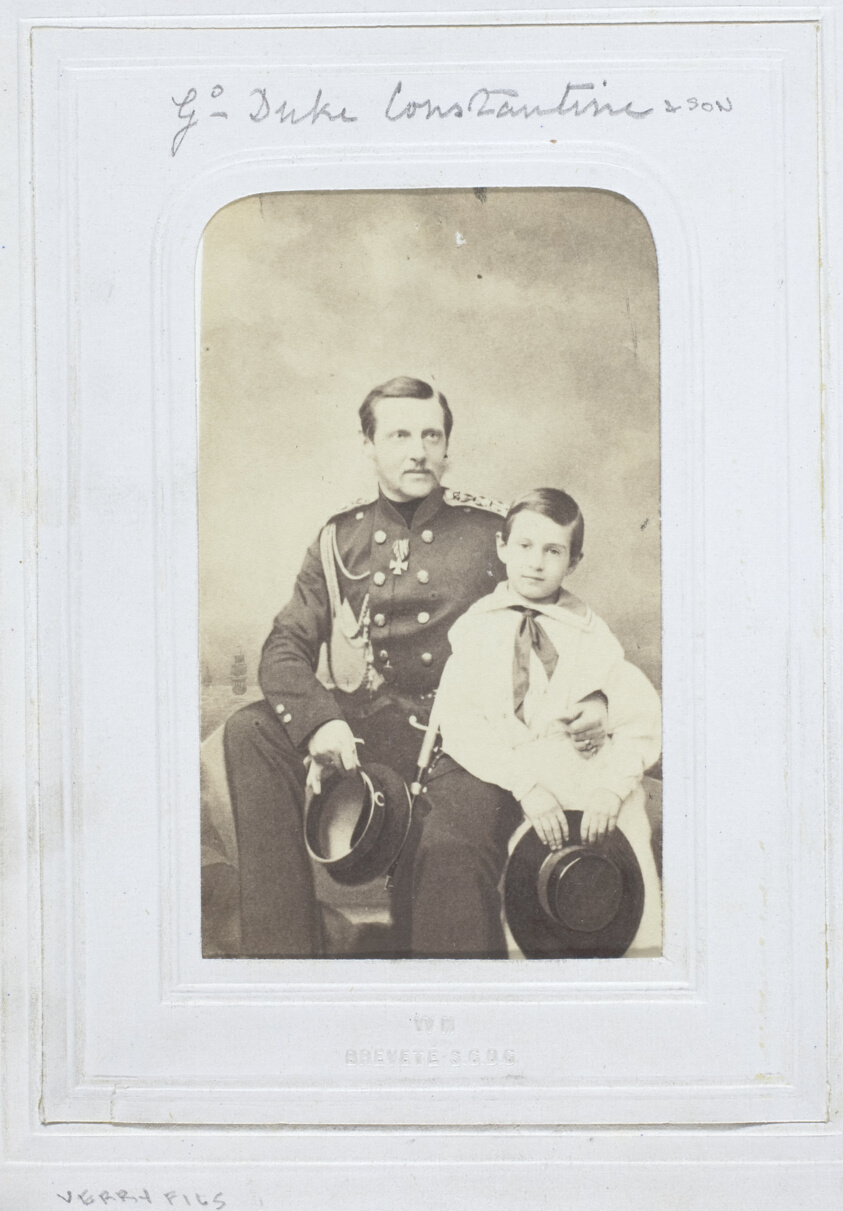 Formal court photography reaches its zenith in this albumen print, which demonstrates the medium's ability to convey both royal dignity and intimate family bonds during the height of the Russian Empire.