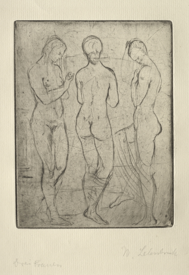Characteristic of the artist's simplified, elongated figure style, this drypoint captures Lehmbruck's distinctive approach to representing the human form with emotional restraint.
