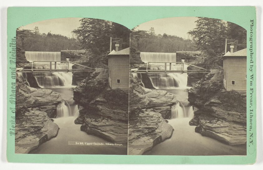 Frear's stereo photography brings American natural beauty into competition with European scenic views, showcasing the dramatic gorges that made Ithaca a popular tourist destination.