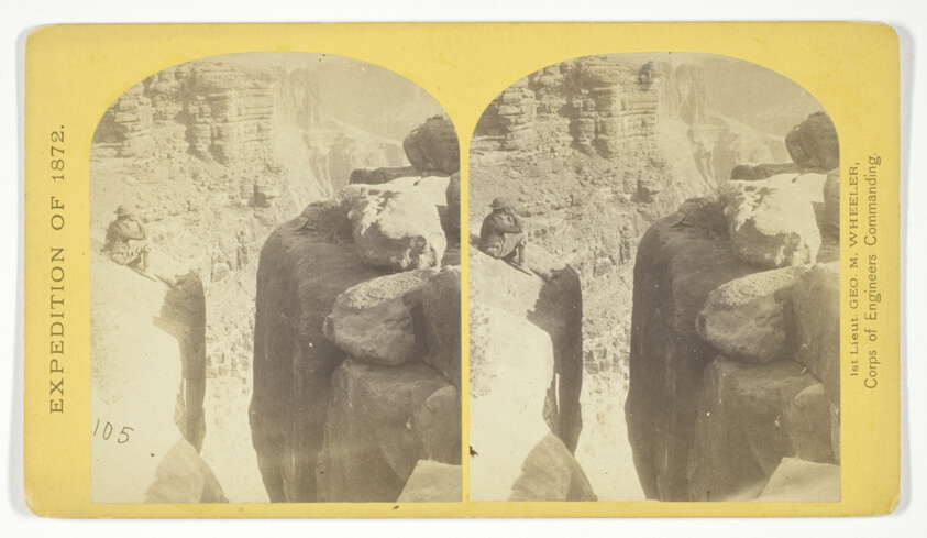 The northern wall of the Grand Cañon of the Colorado, near the foot of To-ro-weap valley. The rounded rocks of the foreground are sand-stone, No. 14 from the series "Geographical Explorations and Surveys West of the 100th Meridian"