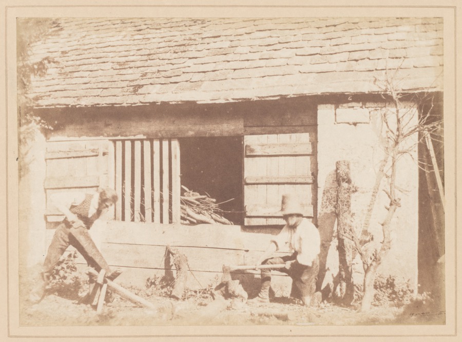 Rural laborers are frozen in their daily work, representing Talbot's interest in documenting contemporary life through his revolutionary paper-based photographic process.