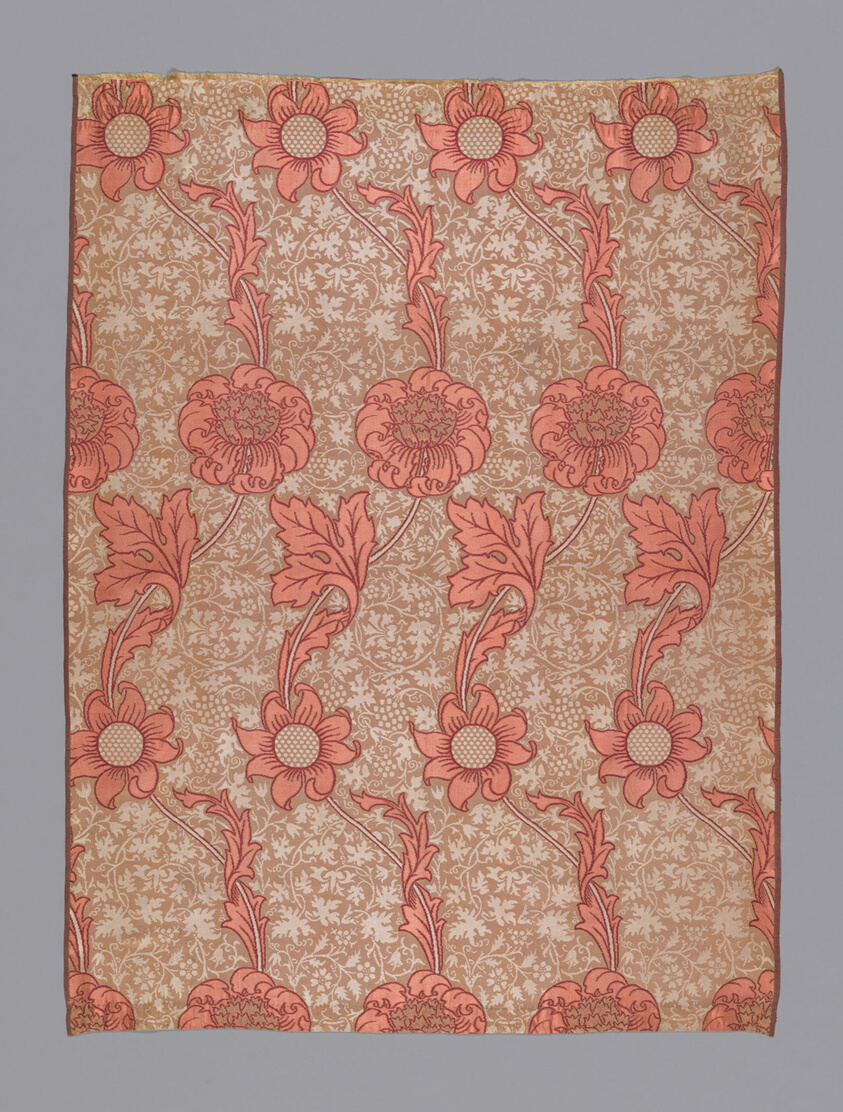 The Kennet pattern was originally made in three different techniques: woven silk, printed cotton, and printed velveteen. These two silk panels [1971.682a,b] are all that remains of floor-to-ceiling window curtains from the parlor of Glessner House on Prairie Avenue in Chicago.