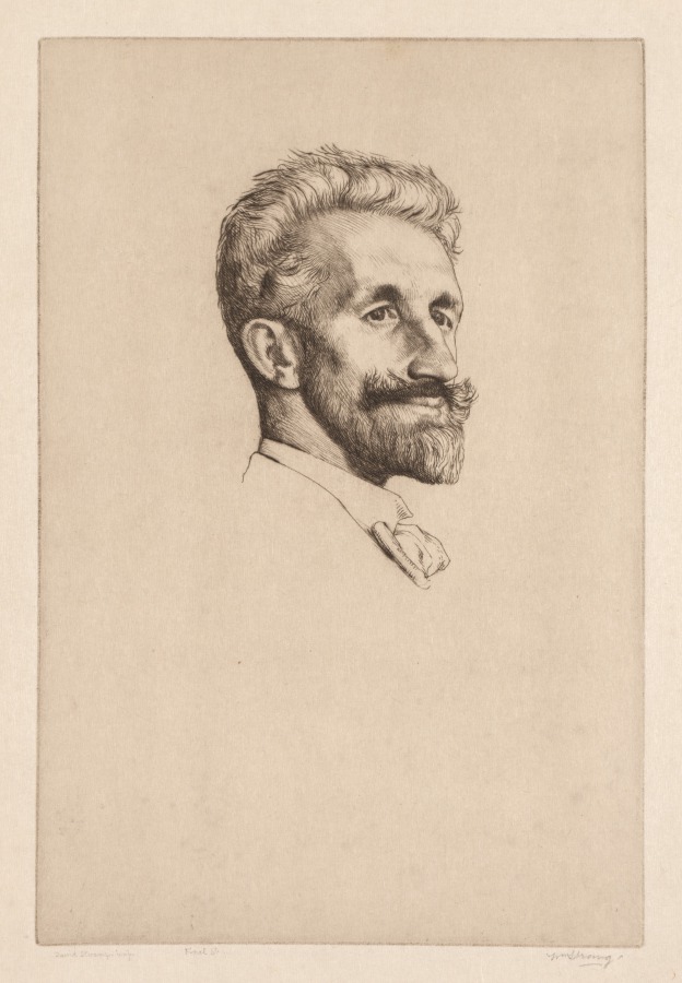 Using mixed printmaking techniques, Strang captures the Scottish writer and politician known for his adventurous spirit and progressive politics.