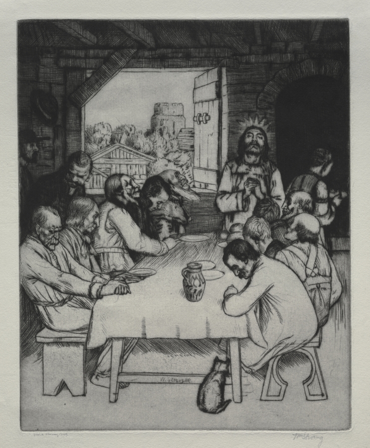 Ambitious in scale and subject matter, the religious composition demonstrates Strang's ability to handle complex multi-figure narratives within the intimate medium of printmaking.
