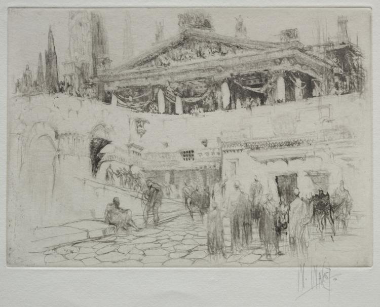Archaeological imagination meets artistic skill in this etching that reconstructs ancient Rome's most sacred temple, showcasing Walcot's expertise in classical architecture.