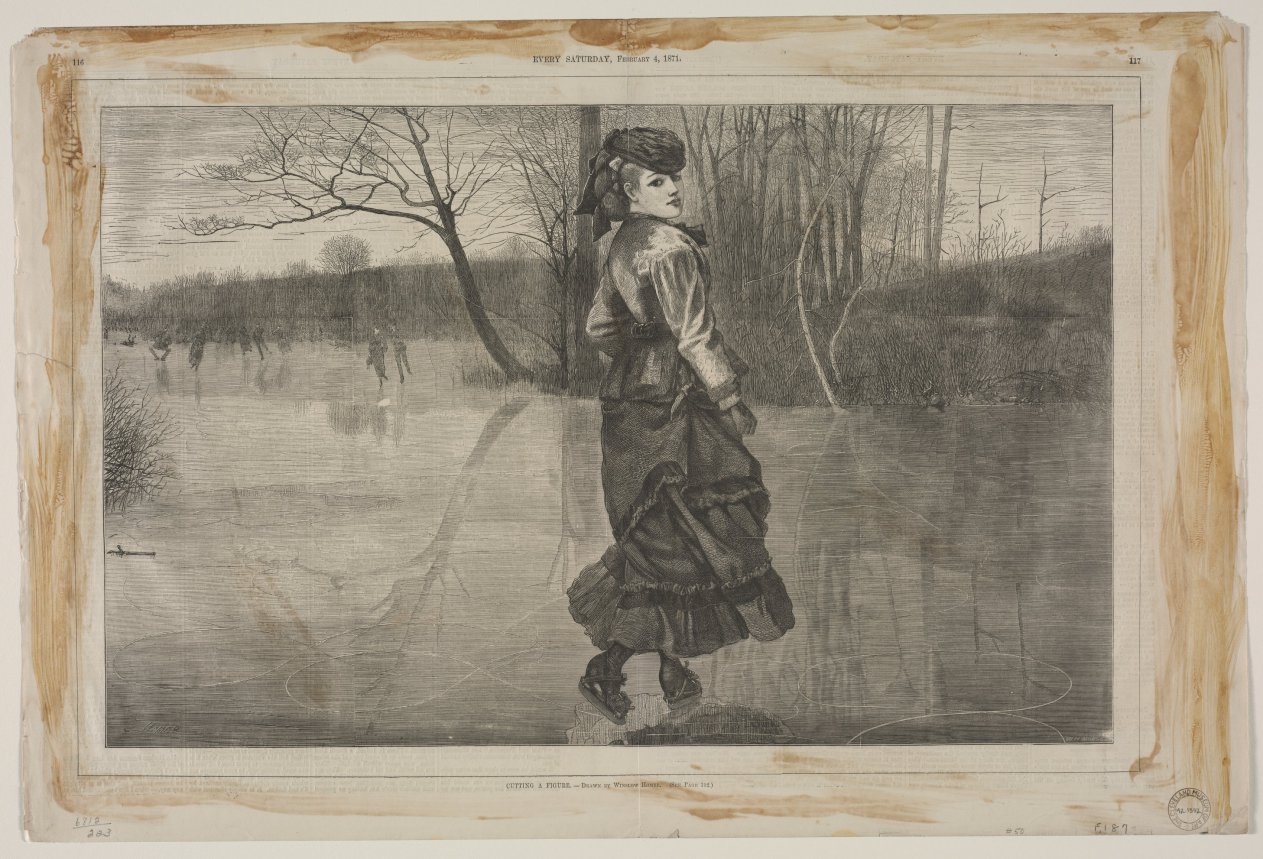 Winter recreation comes alive in this dynamic engraving, showcasing Homer's mastery of depicting movement and his lifelong fascination with seasonal American activities.