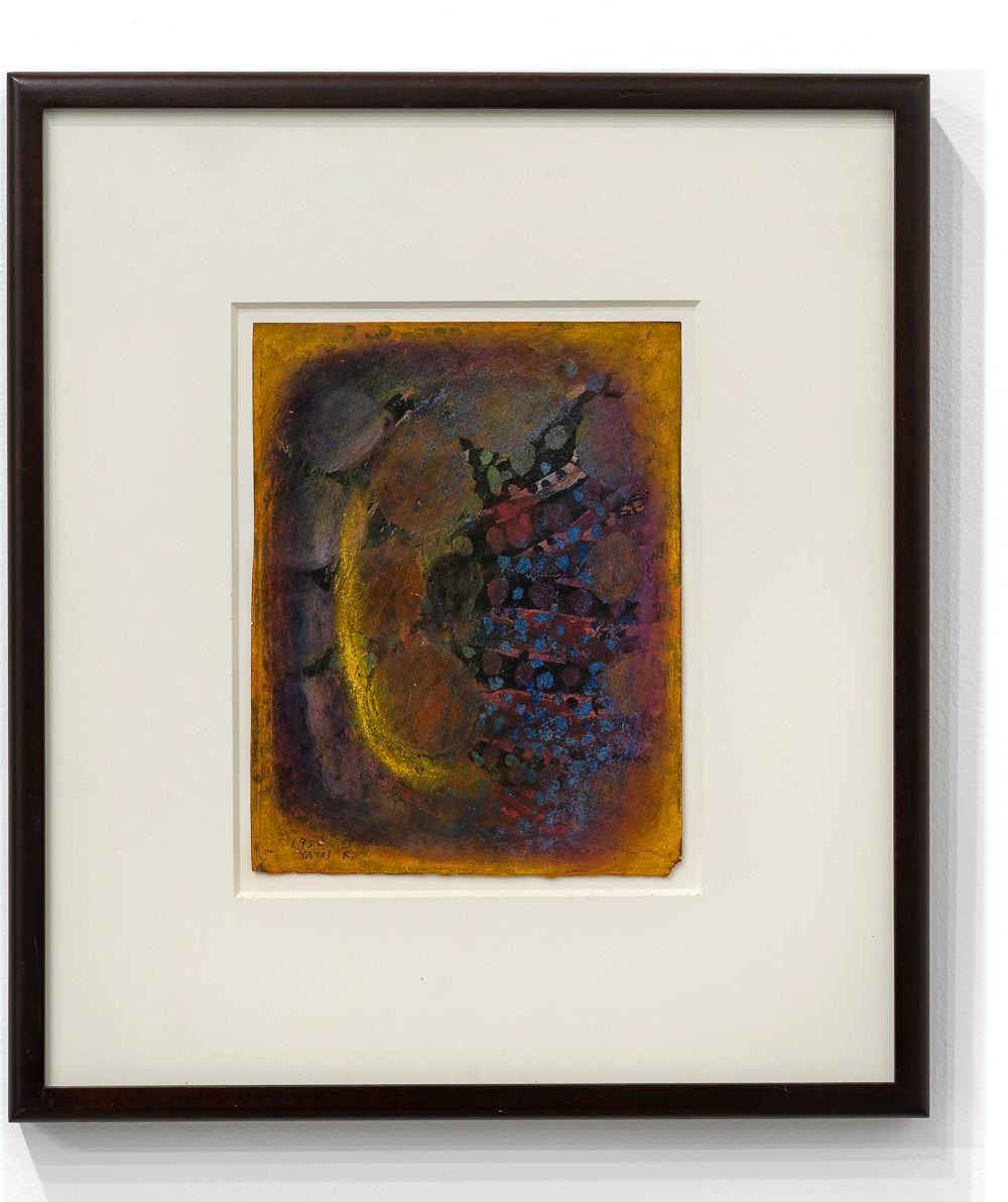 An early work by Yayoi Kusama from 1952, this mixed media piece on paper features her signature botanical imagery rendered in gouache and pastel. Created before her move to New York, it reveals the organic forms and delicate mark-making that would evolve into her iconic infinity net paintings.