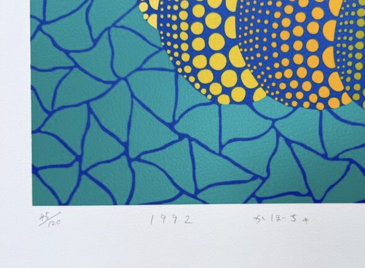 Image size: 38.0 × 45.7 cm (15.0 × 18.0 in). Sheet size: 49.5 × 57.0 cm (19.5 × 22.4 in). Frame size: 79.0 × 72.0 cm (31.1 × 28.3 in). Framed free-floating to museum standards in a handmade gilded frame with 99% UV-resistant museum glass. Catalogue Raisonné: Yayoi Kusama Prints Catalogue Raisonné (1979–2017), no. 156. Certificate of Authenticity issued by gallery included. Increased collector interest noted at time of listing. Part of a limited edition set.