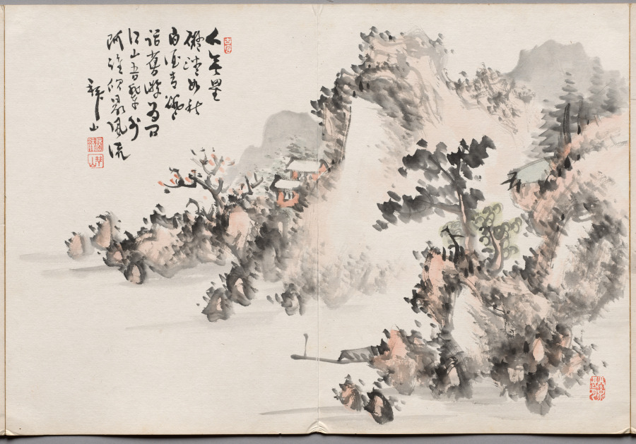 Part of a comprehensive accordion-style album created during Japan's Meiji period, demonstrating the continued vitality of traditional ink and color techniques amid rapid Western modernization. Each spread showcases Haizan's mastery of classical Japanese painting methods within an intimate, portable format.