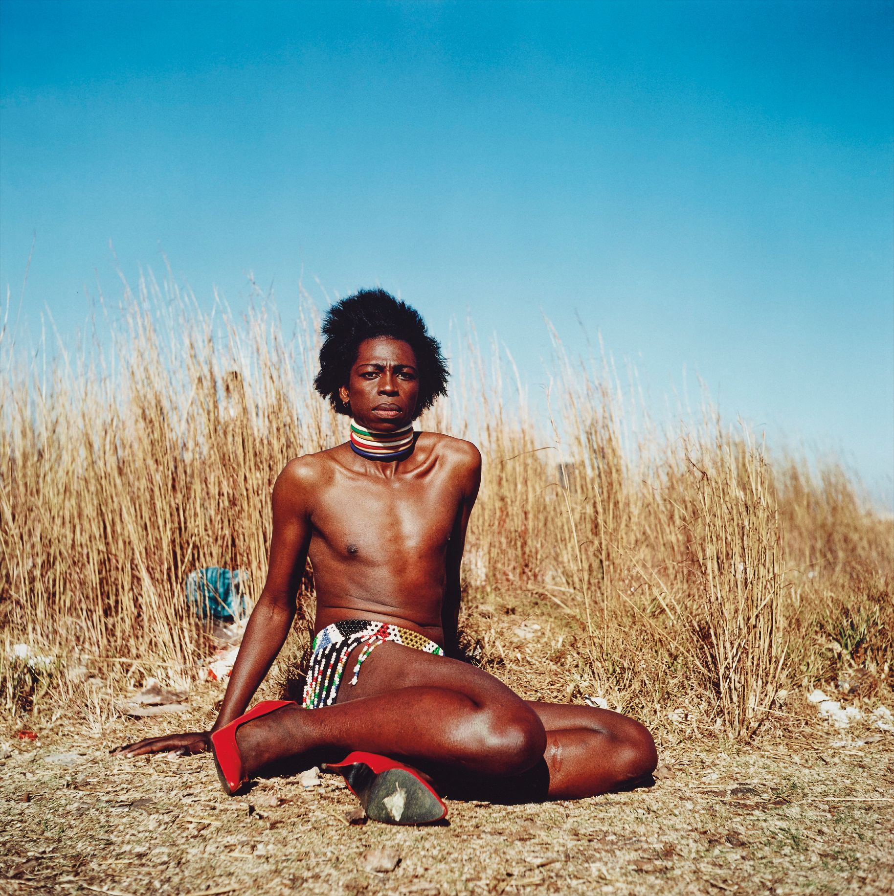 Zanele Muholi's portrait from her ongoing series celebrating Black lesbian identity and visibility. The work is part of a larger project affirming dignity, beauty, and presence within marginalized communities.