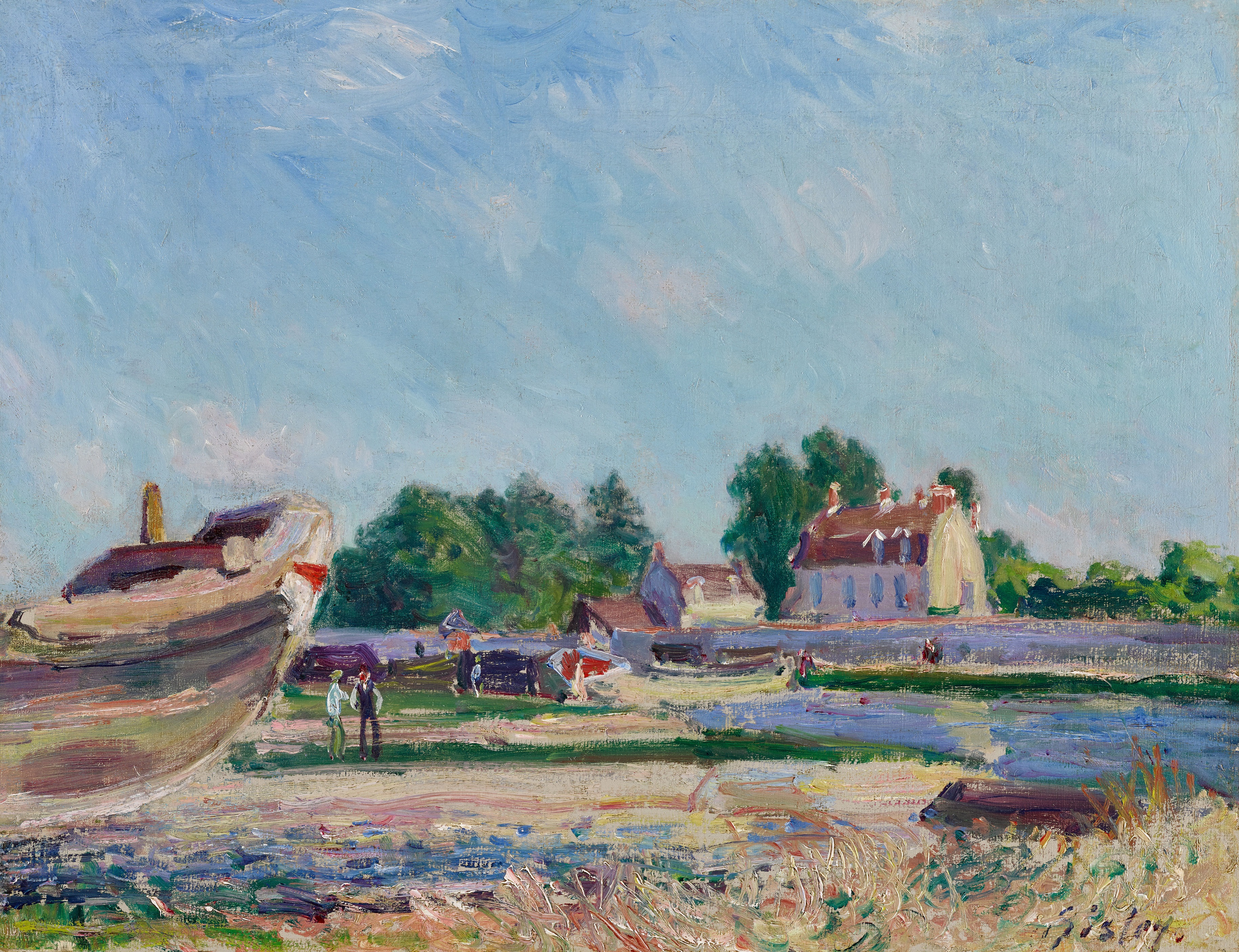 Bateaux en réparation à Saint-Mammès, canal du Loing, 1885