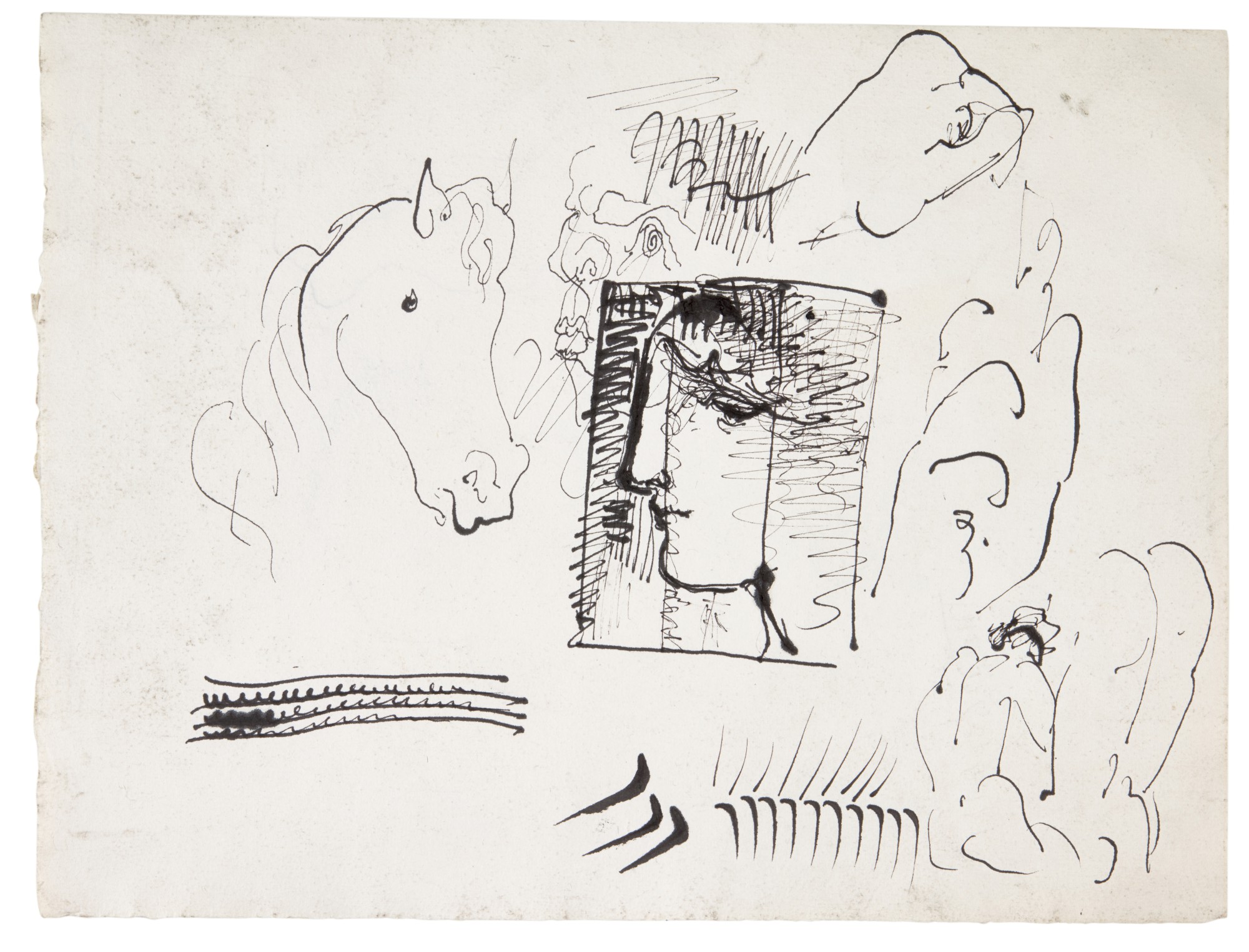 Études (visages - cheval - nus) - recto Croquis de jambes - verso, 1931