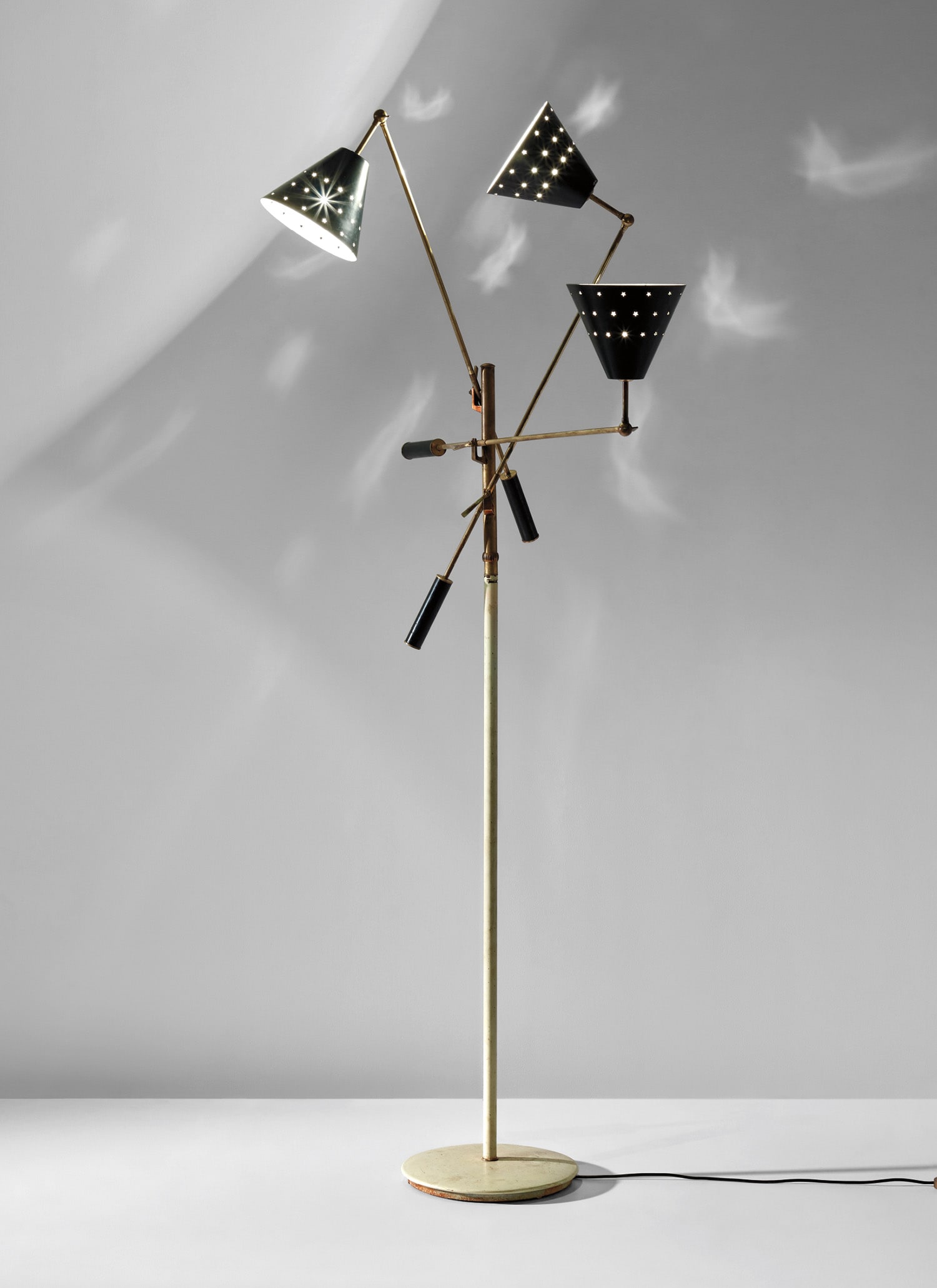 Rare 'Triennale' three-armed adjustable standard lamp, model no. 12128s