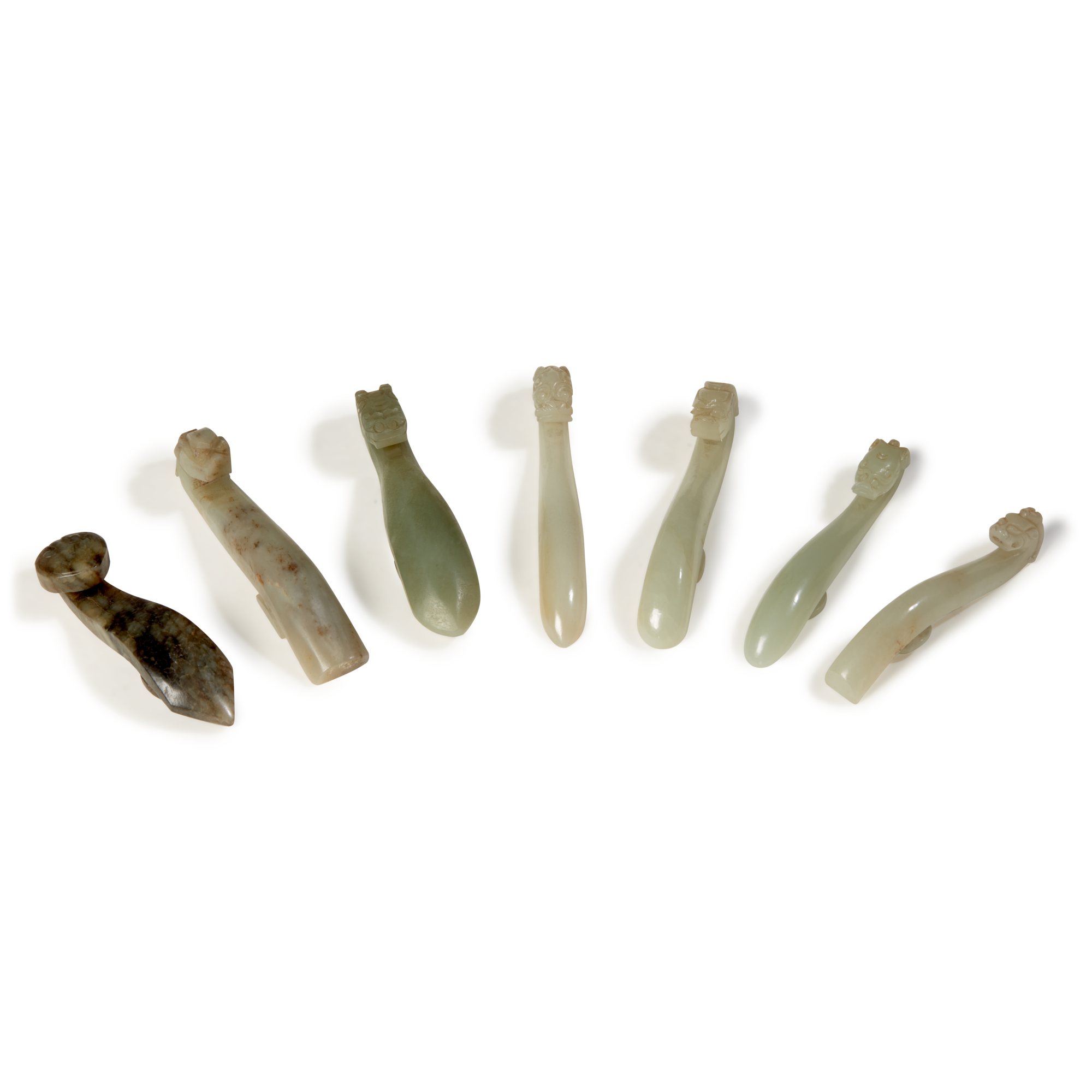 A group of seven celadon jade belthooks,