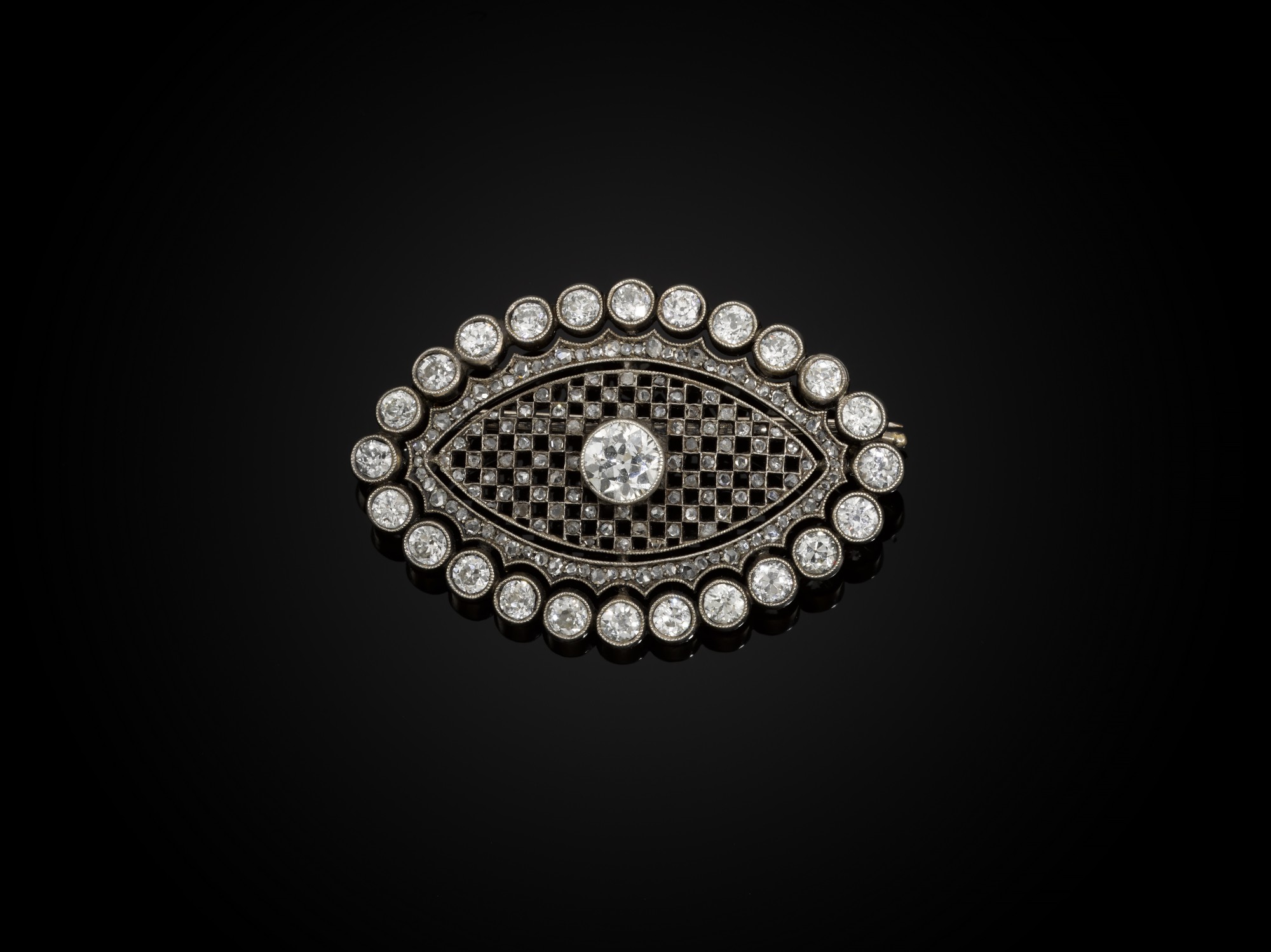 A Fabergé platinum, gold and diamond brooch, workmaster Albert Holmström, probably designed by Alma Pihl, St Petersburg, 1908-1917 — A Fabergé platinum, gold and diamond brooch, workmaster Albert Holmström, probably designed by Alma Pihl, St Petersburg, 1908-1917