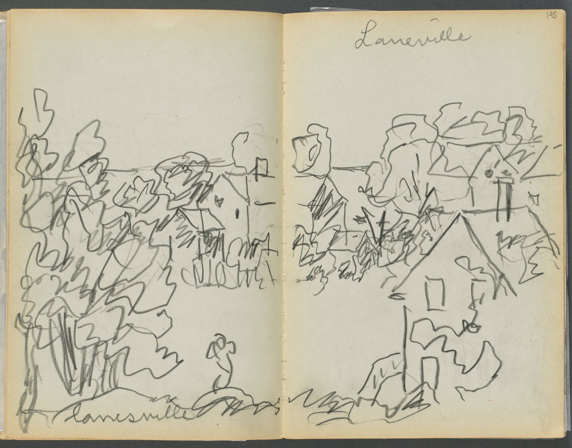Sketchbook- The Granite Shore Hotel, Rockport, page 144 & 145: "Lanesville"