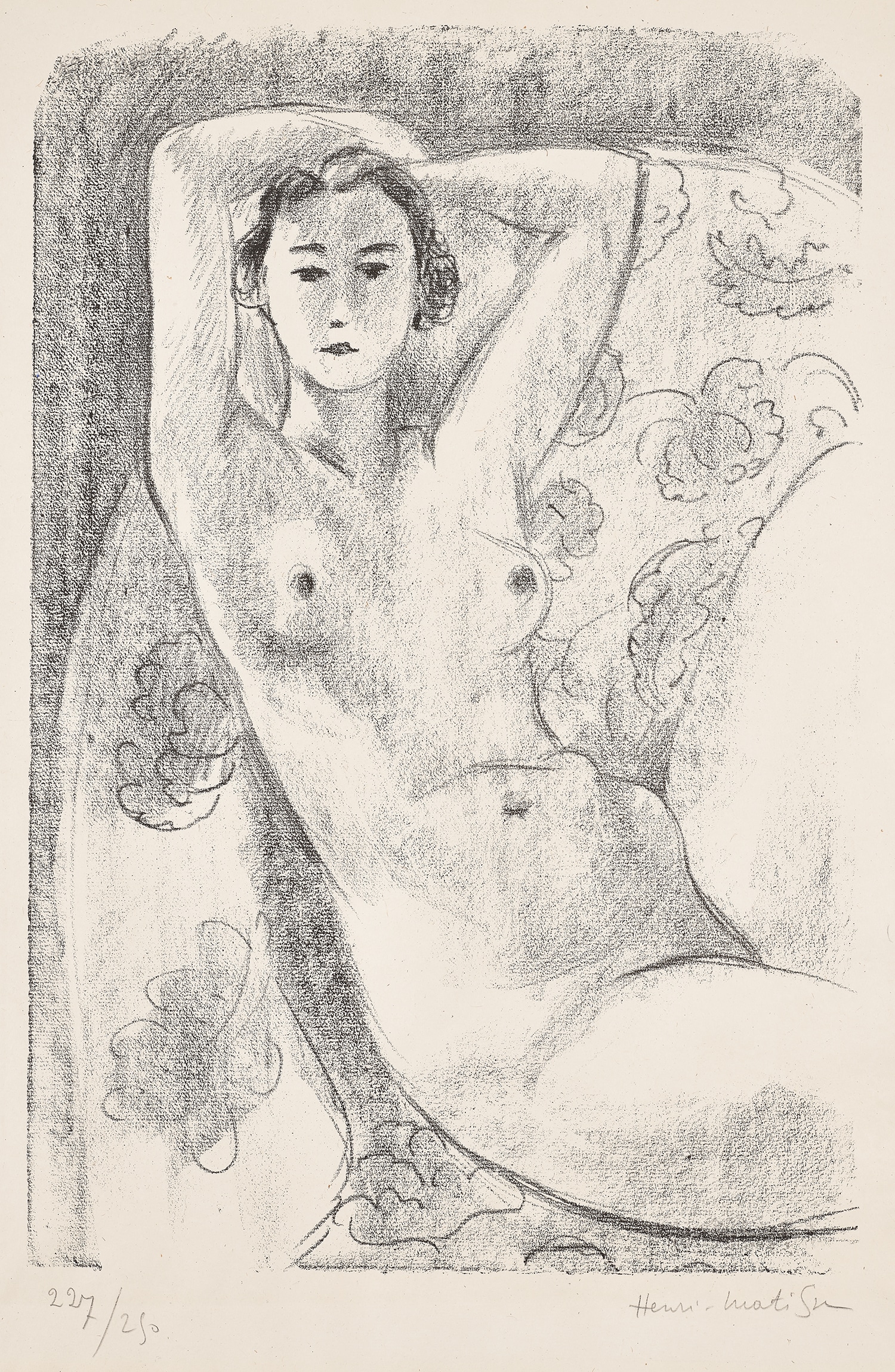 Nu assis dans un fauteuil au décor fleuri (Nude Sitting in a Floral Decorated Armchair) (D. 445)