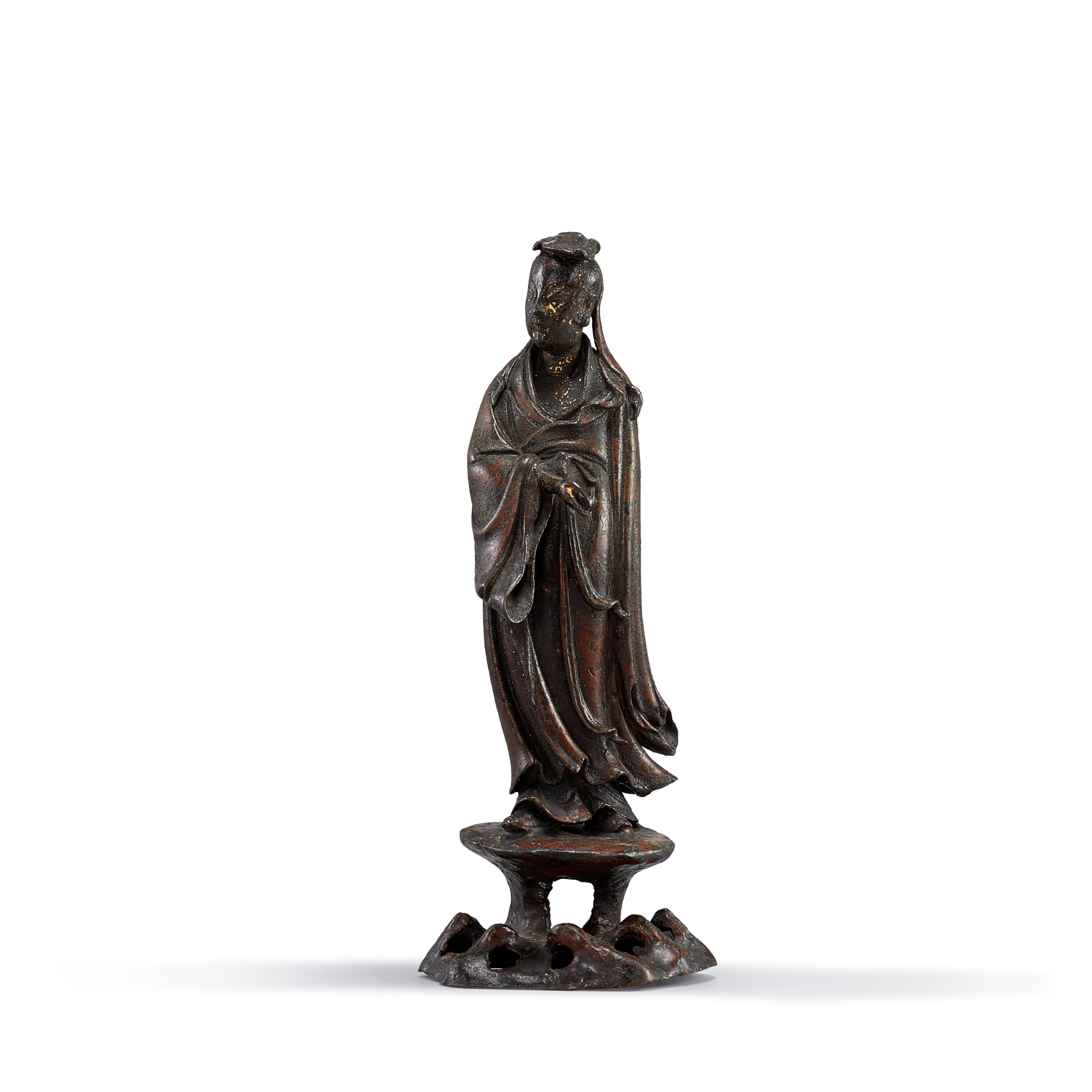 A parcel-gilt bronze figure of a Daoist immortal, Ming dynasty 明 銅局部鎏金道教人物立像
