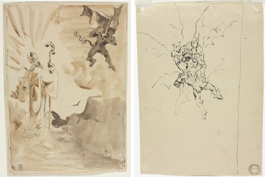 The Bishop and the Demon (recto); Three Demons Holding a Knight (verso), 1900