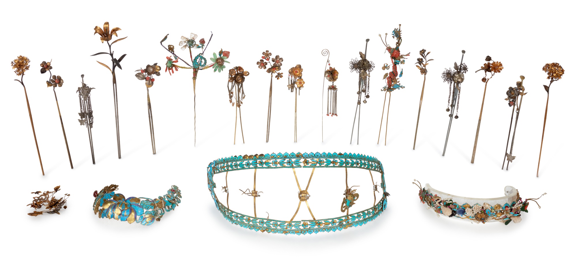 A group of twenty kingfisher feather hair ornaments, Late Qing dynasty
