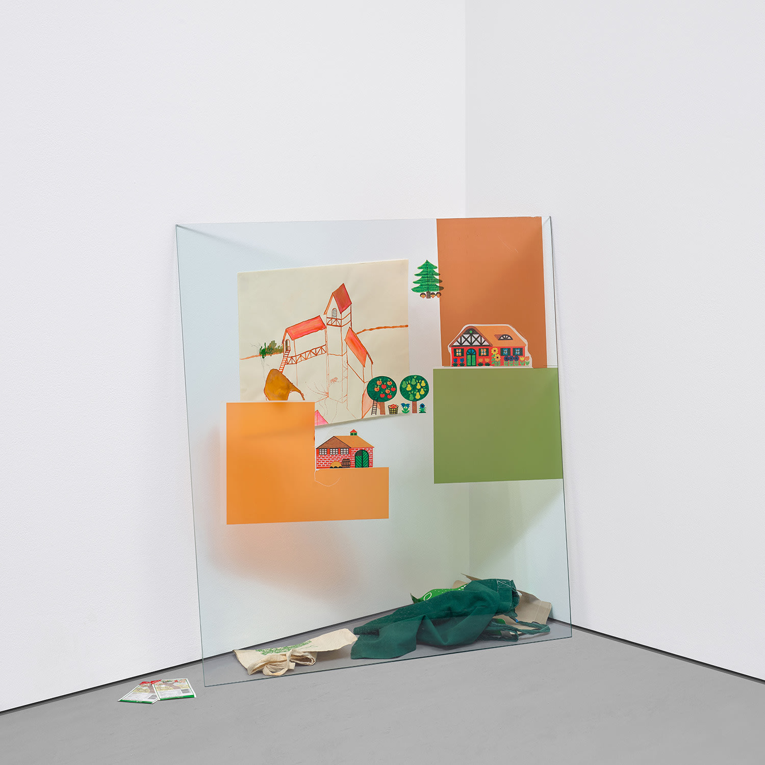cardboard, glass with stickers, paper, matches, bester label and white tote, in 8 parts, 1997