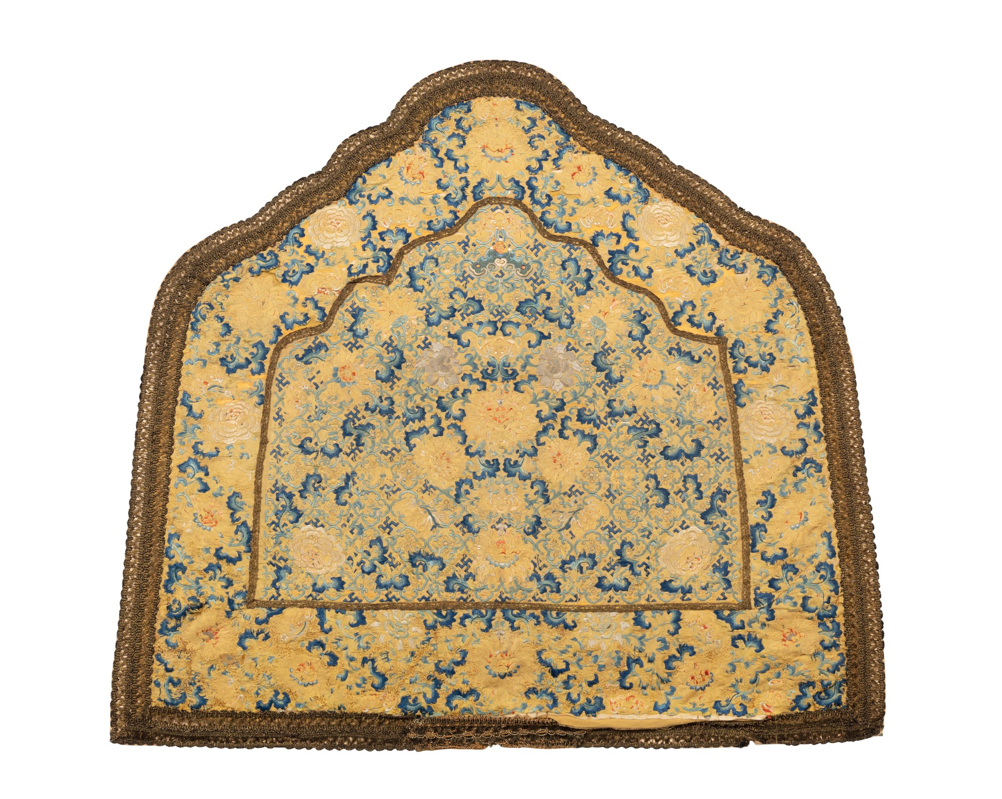 清十八至十九世紀 黃地緞繡花卉紋墊面