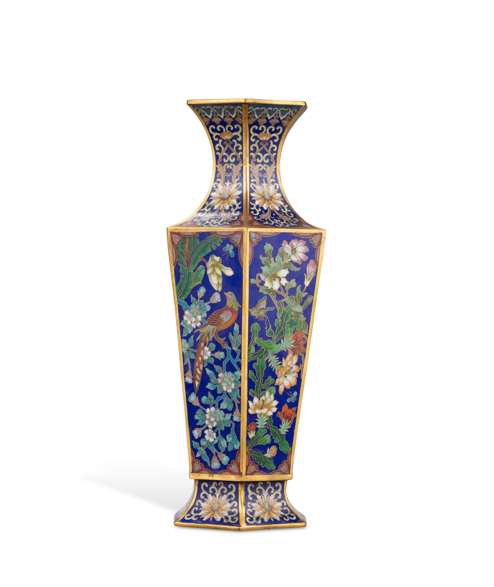 二十世紀 掐絲琺瑯花鳥紋六方瓶