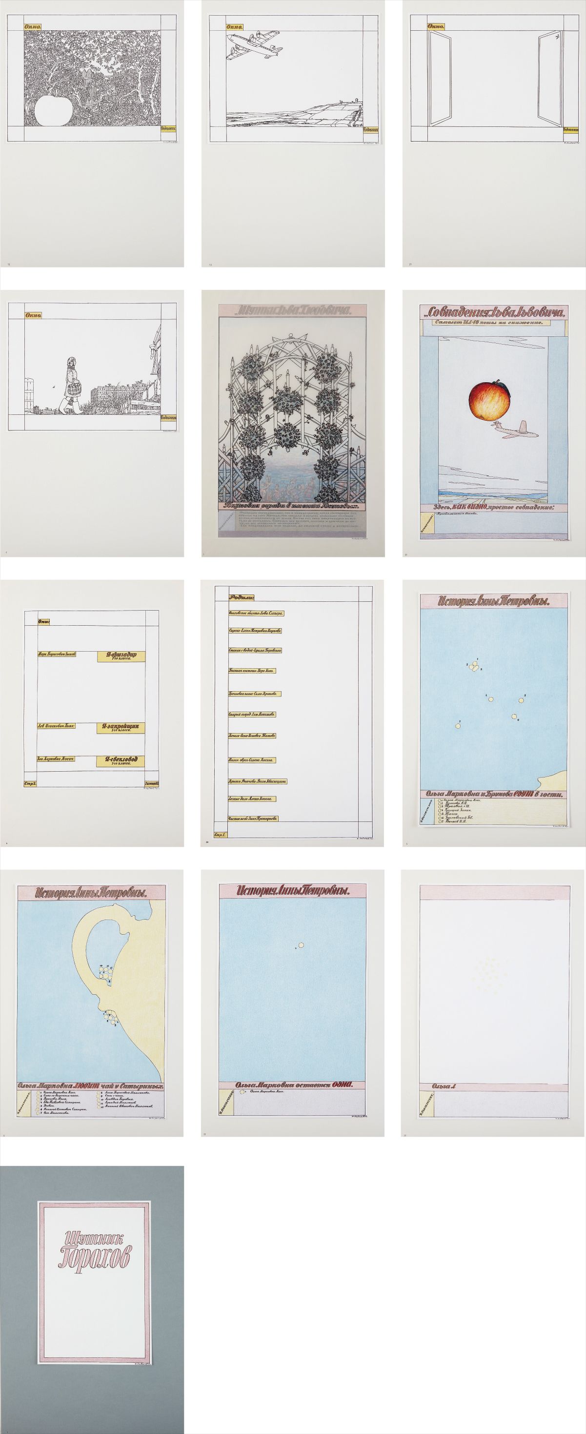 10 Characters, Complete Set of Portfolios: (i) The Flying Komarov; (ii) The Joker Gorokhov; (iii) Generous Barmin; (iv) Agonizing Surikov (v) Anna Petrova Has A Dream; (vi) Sitting-in-the-Closet Primakov; (vii) Mathematical Gorsky; (viii) The Decorator Maligin; (ix) The Released Gavrilov; (x) The Looking-Out-The-Window Arkhipov