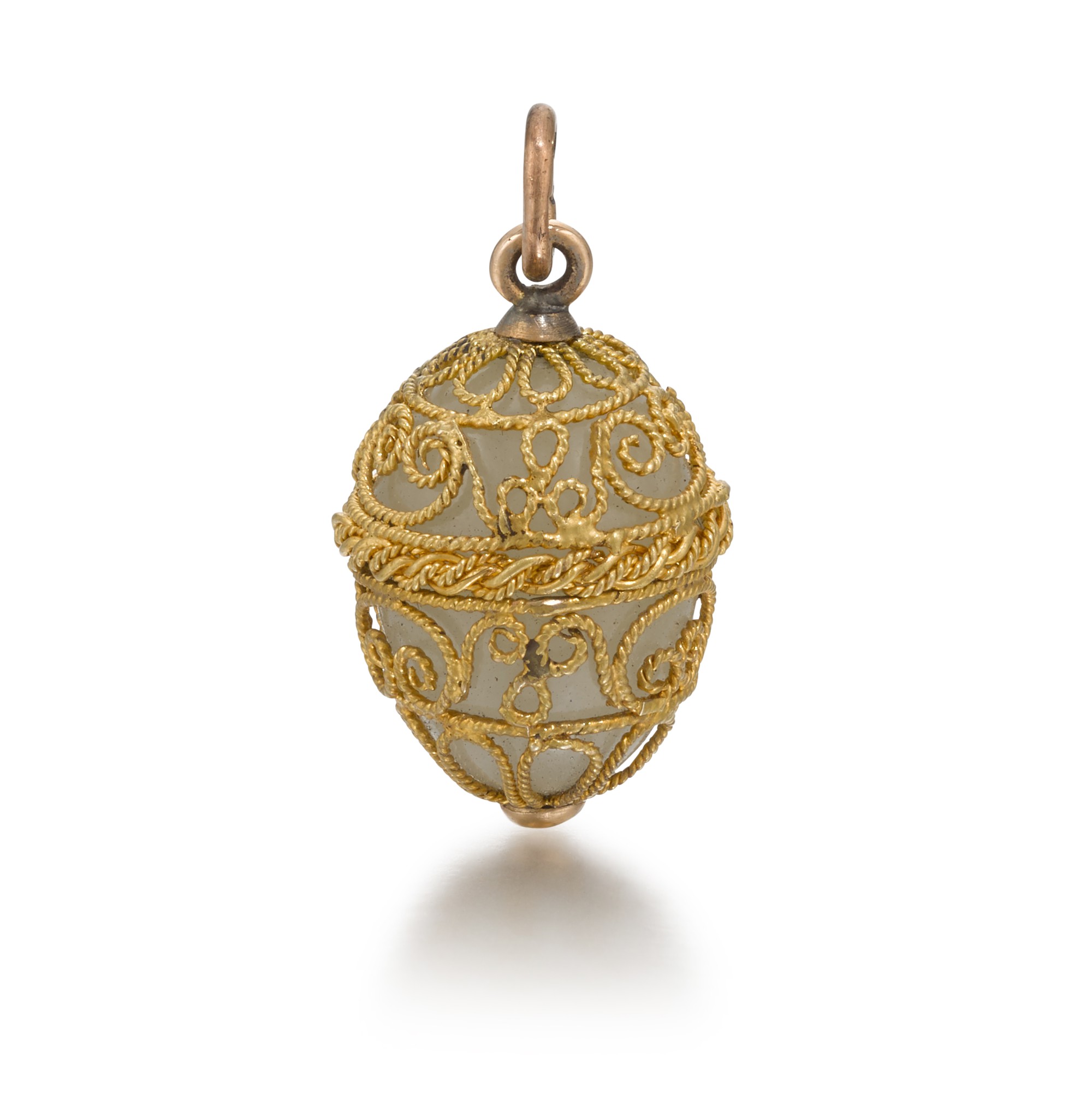 A Fabergé gold and hardstone egg pendant, workmaster Feodor Afanassiev, St Petersburg, circa 1900