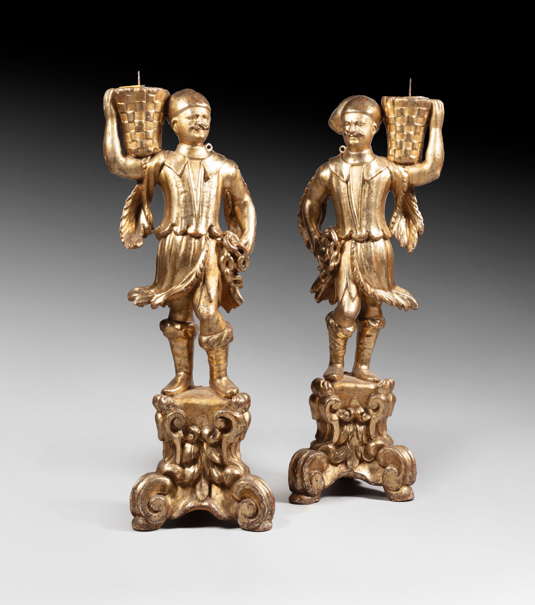 Paire de figures de turcs en bois doré, Italie, XVIIIeme siècle