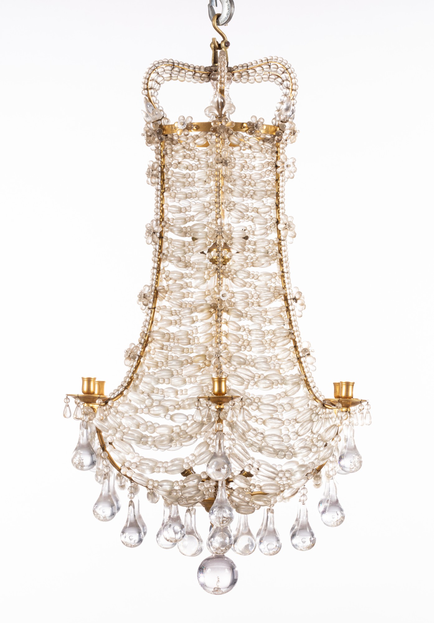 Paire de lustres à lacé à six lumières en métal doré et verre de style Louis XIV, XXe siècle