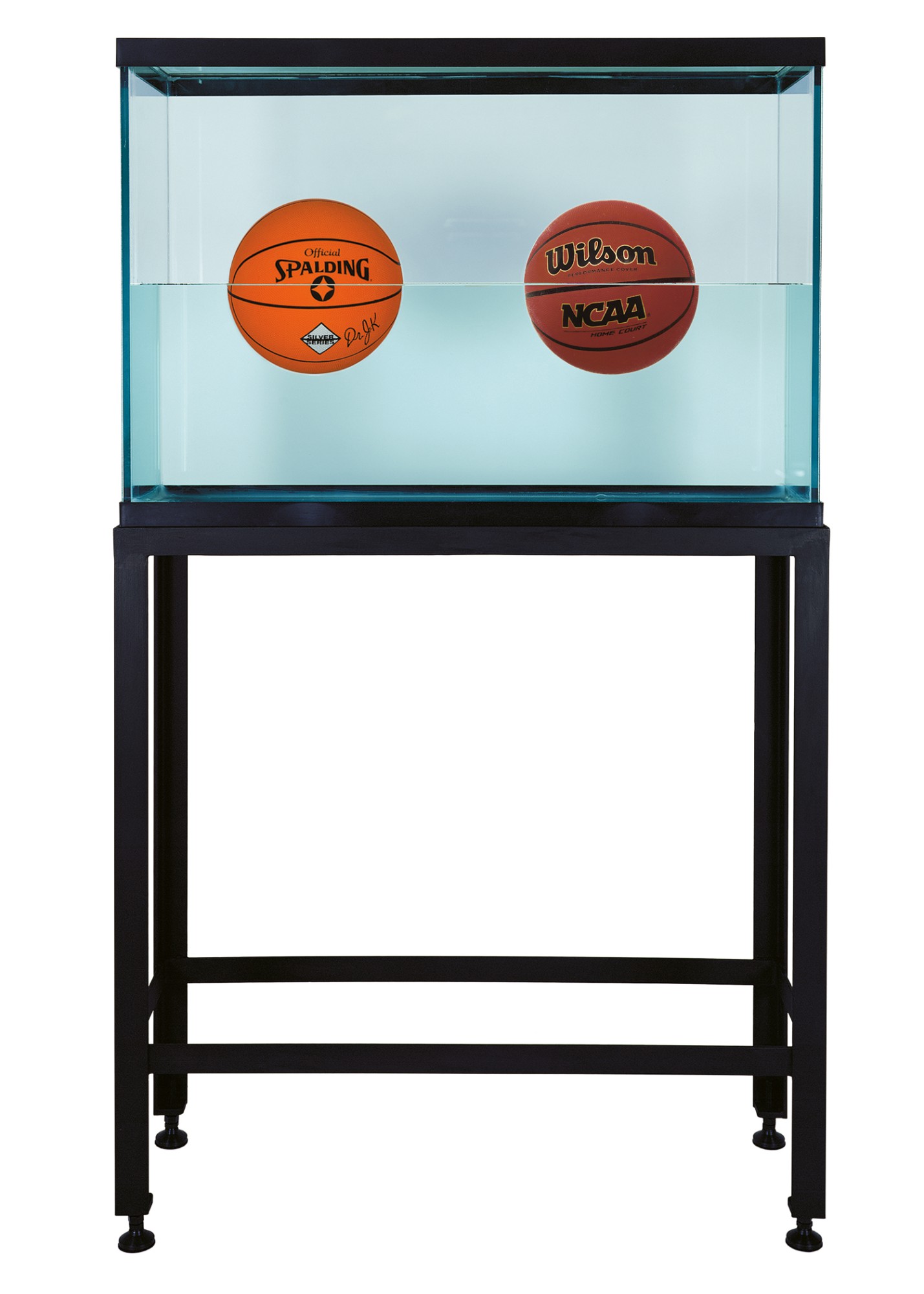 《半滿水缸,兩個籃球(Spalding Dr. J Silver 系列與 Wilson Supershot)》, 1985