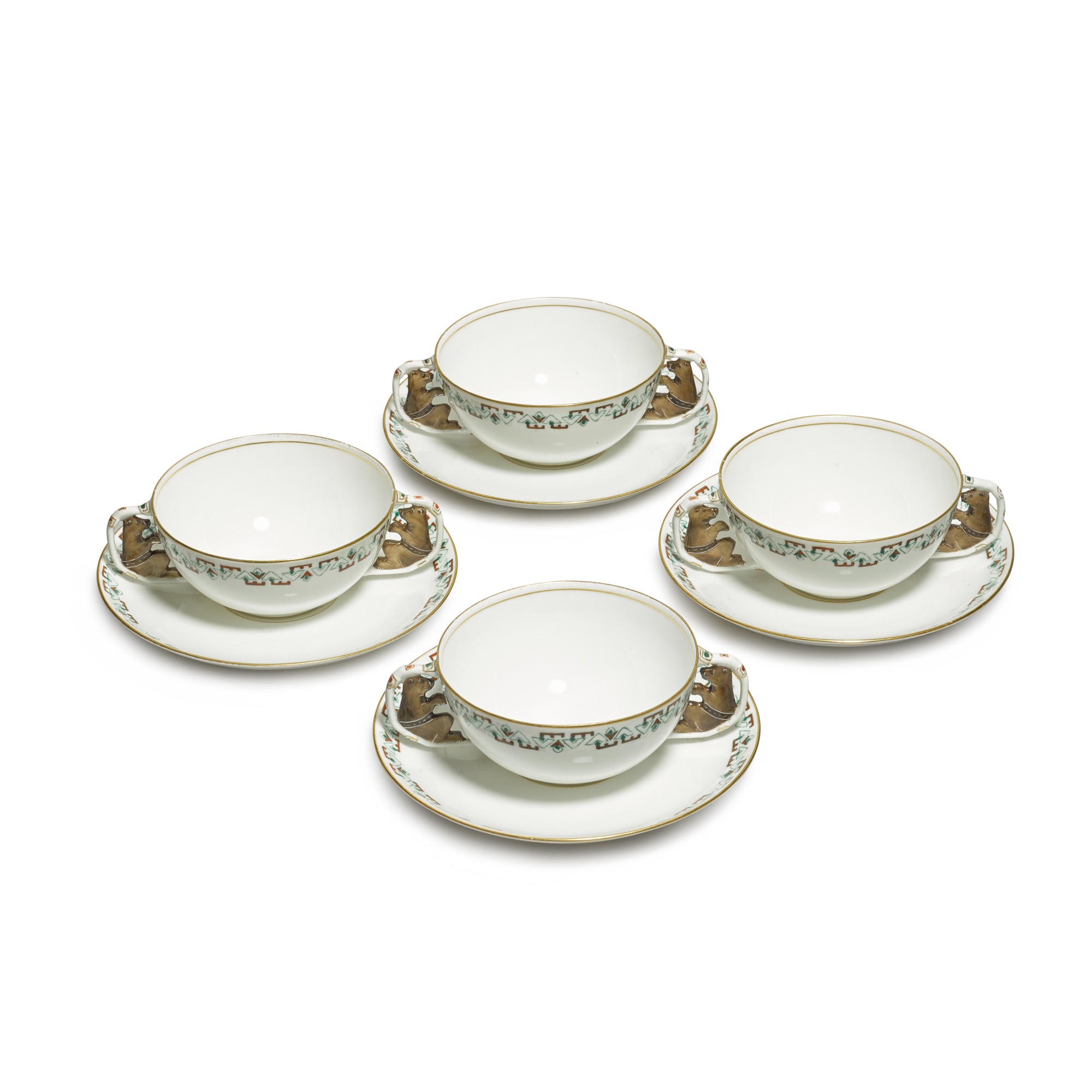 A set of four porcelain cups and saucers, Kornilov Brothers Porcelain Factory, St Petersburg, late 19th century