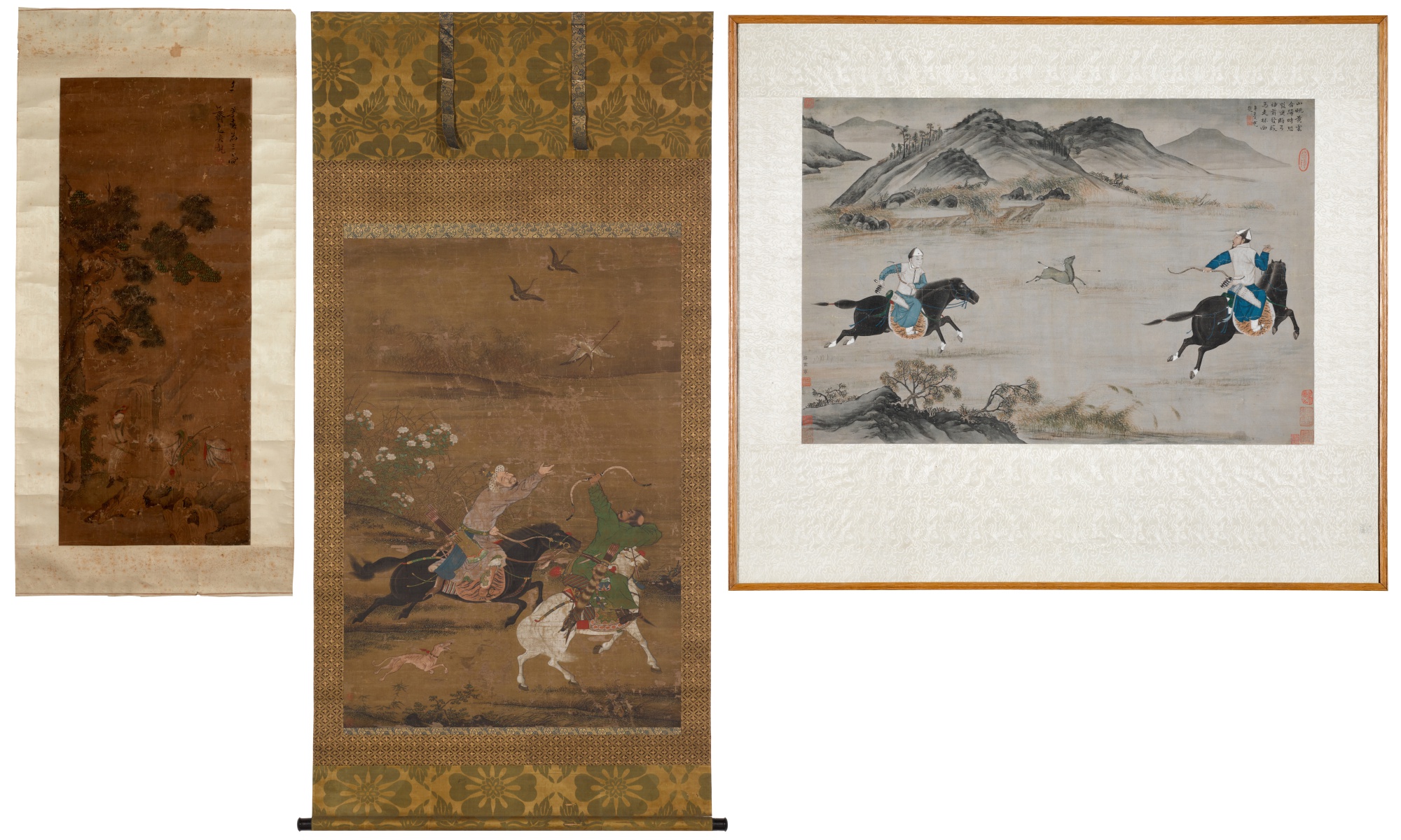 A Group of Three Paintings of Hunting Scenes