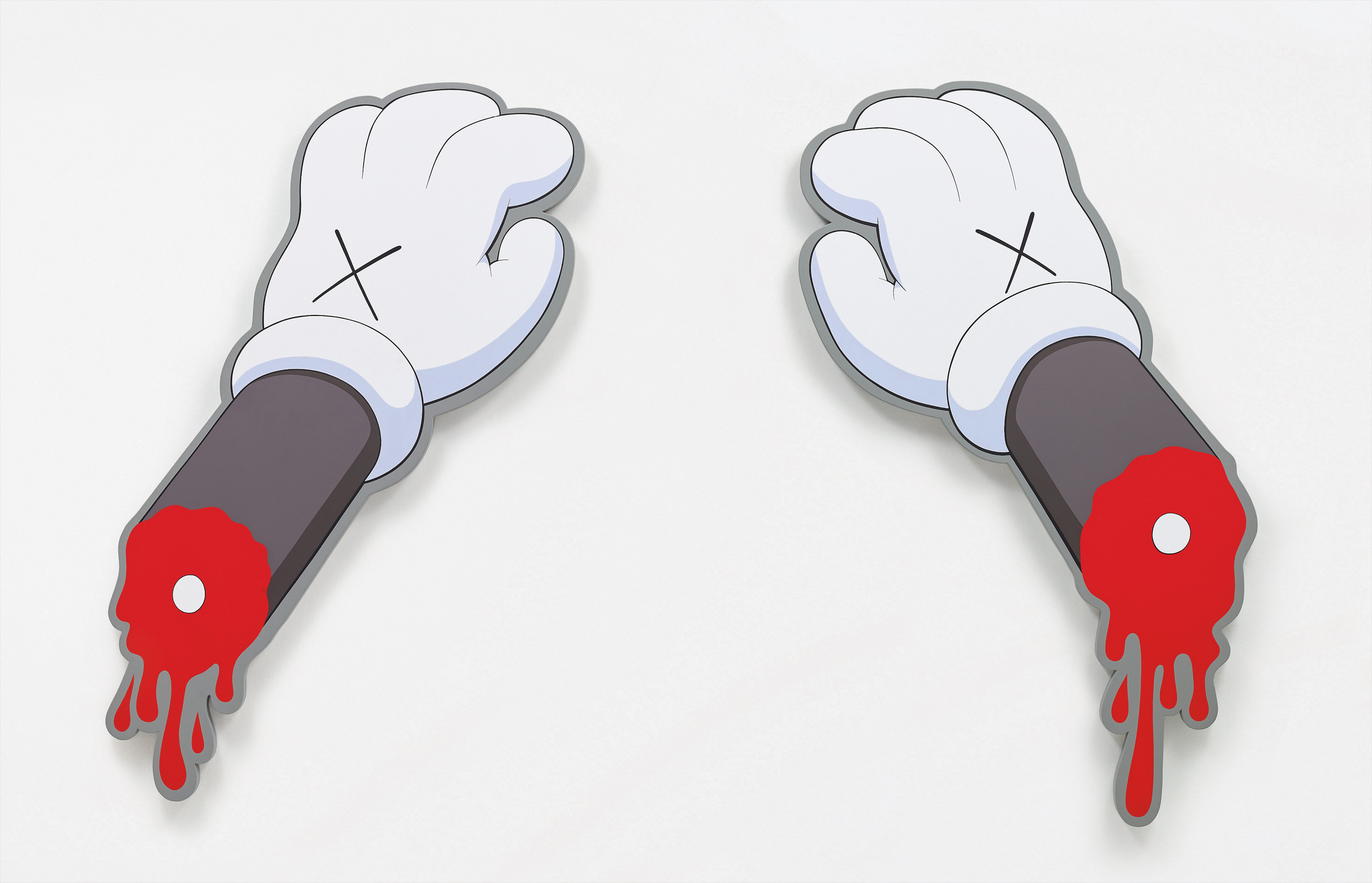 Brooklyn-based artist KAWS re-appropriates bits of popular culture and transforms them into eye catching iconic paintings. His cartoon-like characters, recognizable to the media savvy public, undergo a sardonic set of alterations. The present lot depicts the popular children’s cartoon character, SpongeBob SquarePants. KAWS explains, “I started doing SpongeBob paintings for Pharrell. Then I started doing smaller paintings, which got much more abstract. And SpongeBob was something I wanted to do because graphically I love the shapes.” (KAWS in conversation with Toby Maguire,
