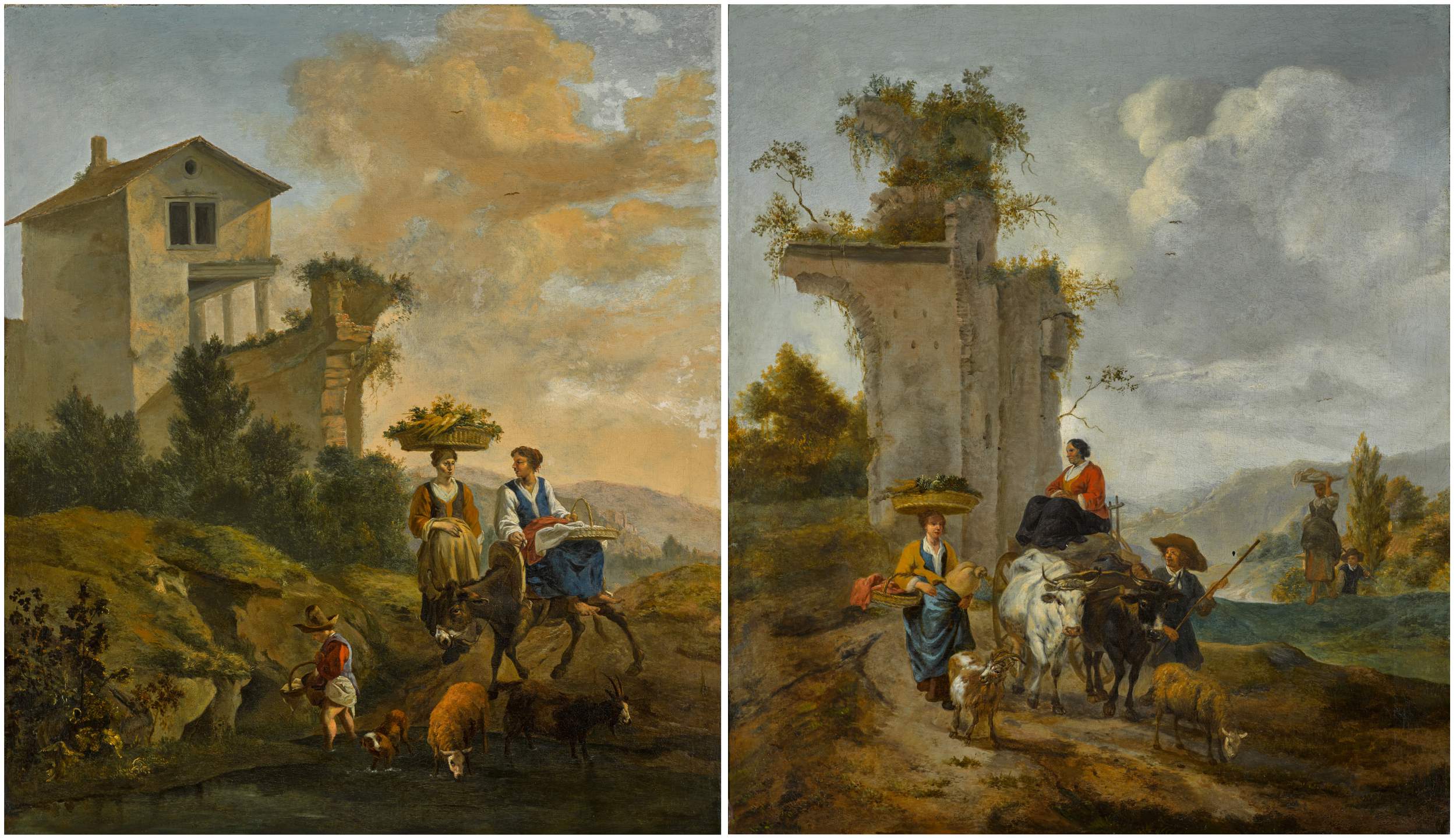 An Italianate landscape with village women; and an Italianate landscape with villagers