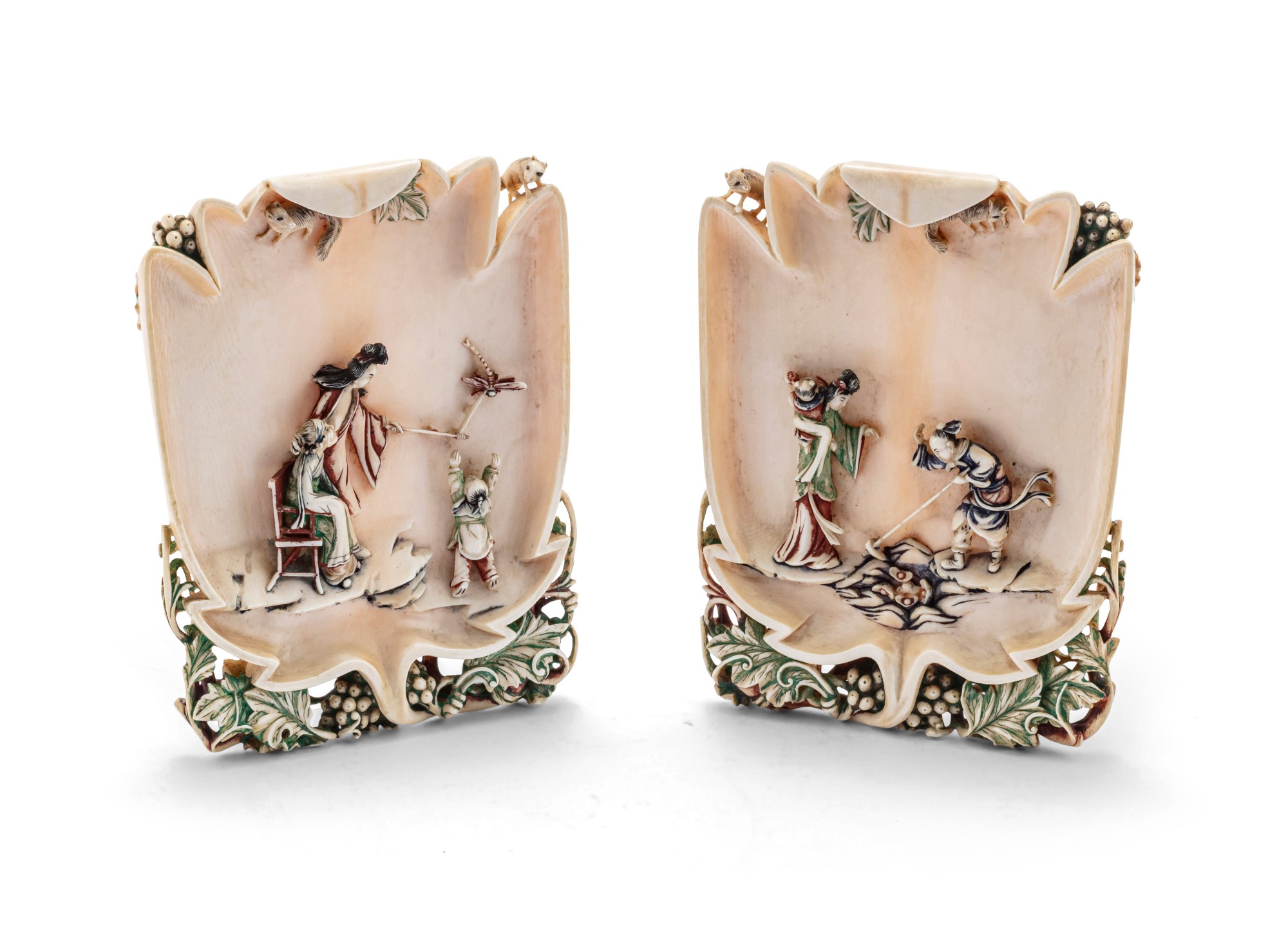 清十八至十九世紀 染色象牙雕人物故事圖筆掭兩件