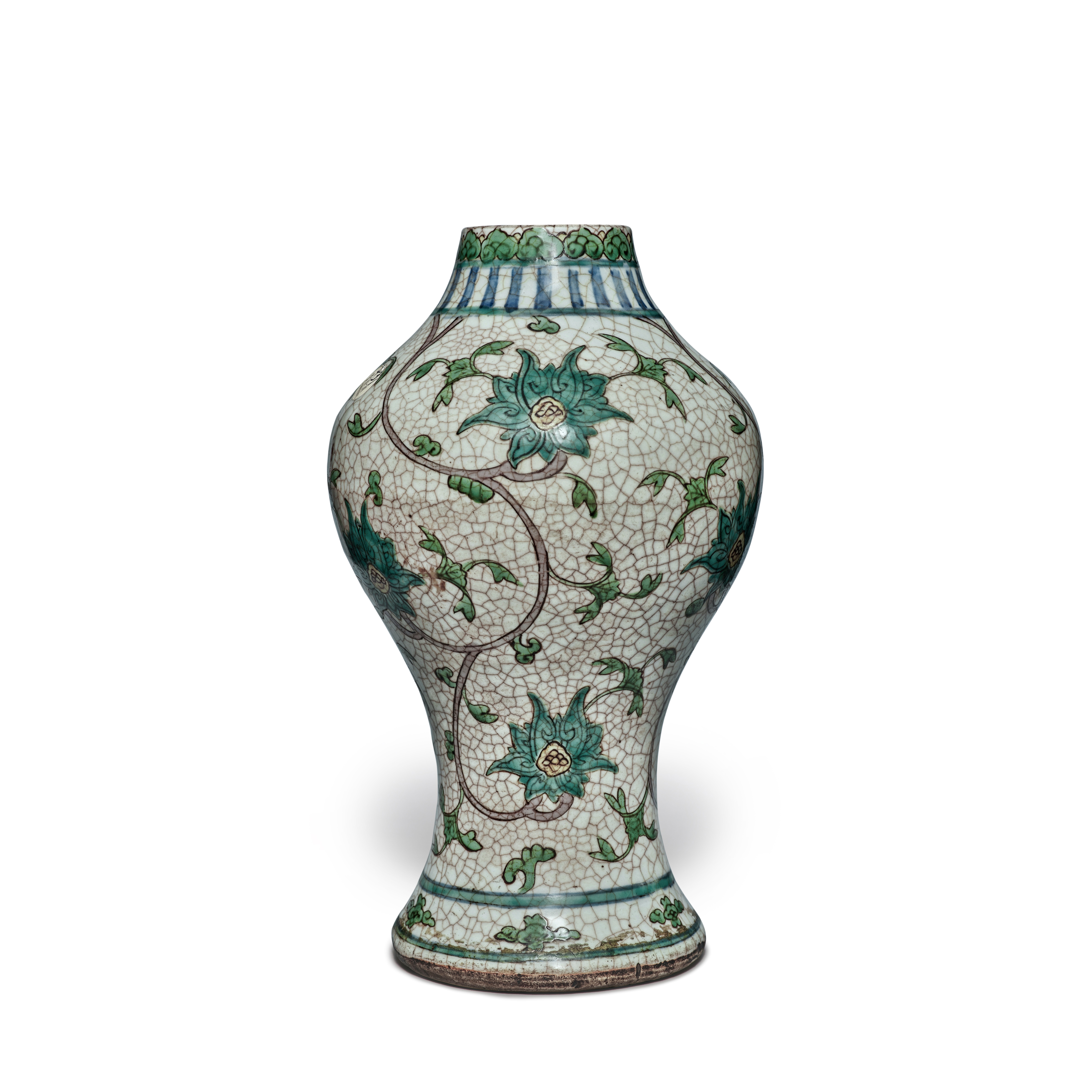 十六至十七世紀 琺華蓮紋長頸瓶兩件