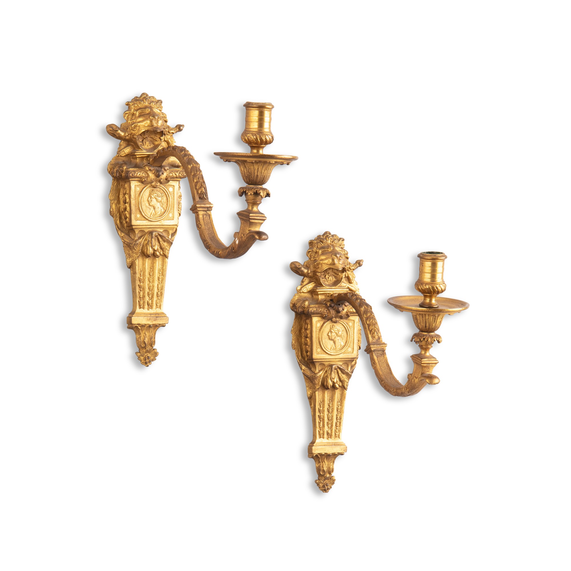 Paire d'appliques à une lumière en bronze doré de style Louis XIV, XIXe siècle