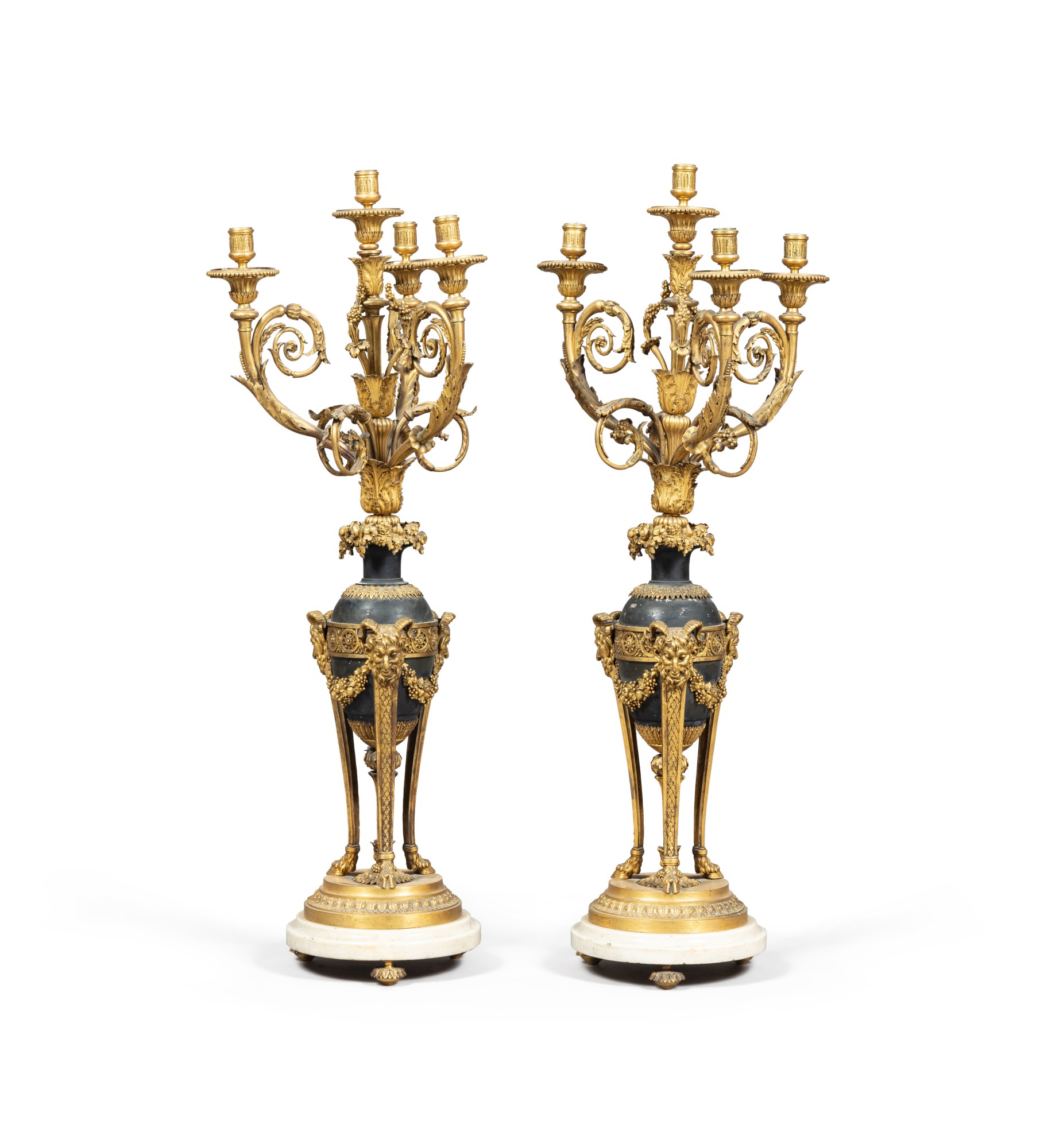 Paire de candélabres en bronze patiné et bronze doré de style Louis XVI, fin du XIXe siècle