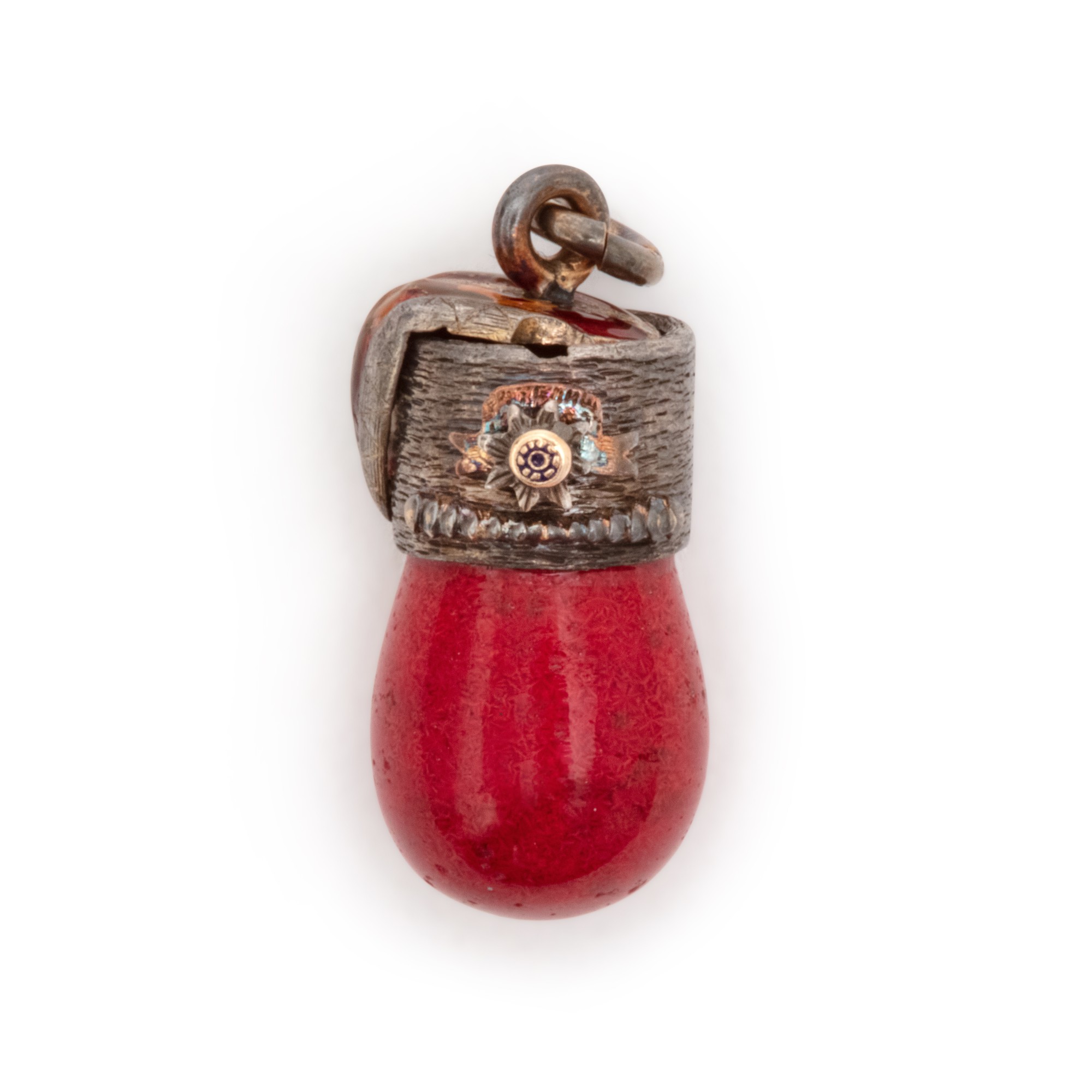 A Fabergé gold and silver-mounted guilloché enamel and purpurin egg pendant, workmaster Erik Kollin, St Petersburg, 1899-1903