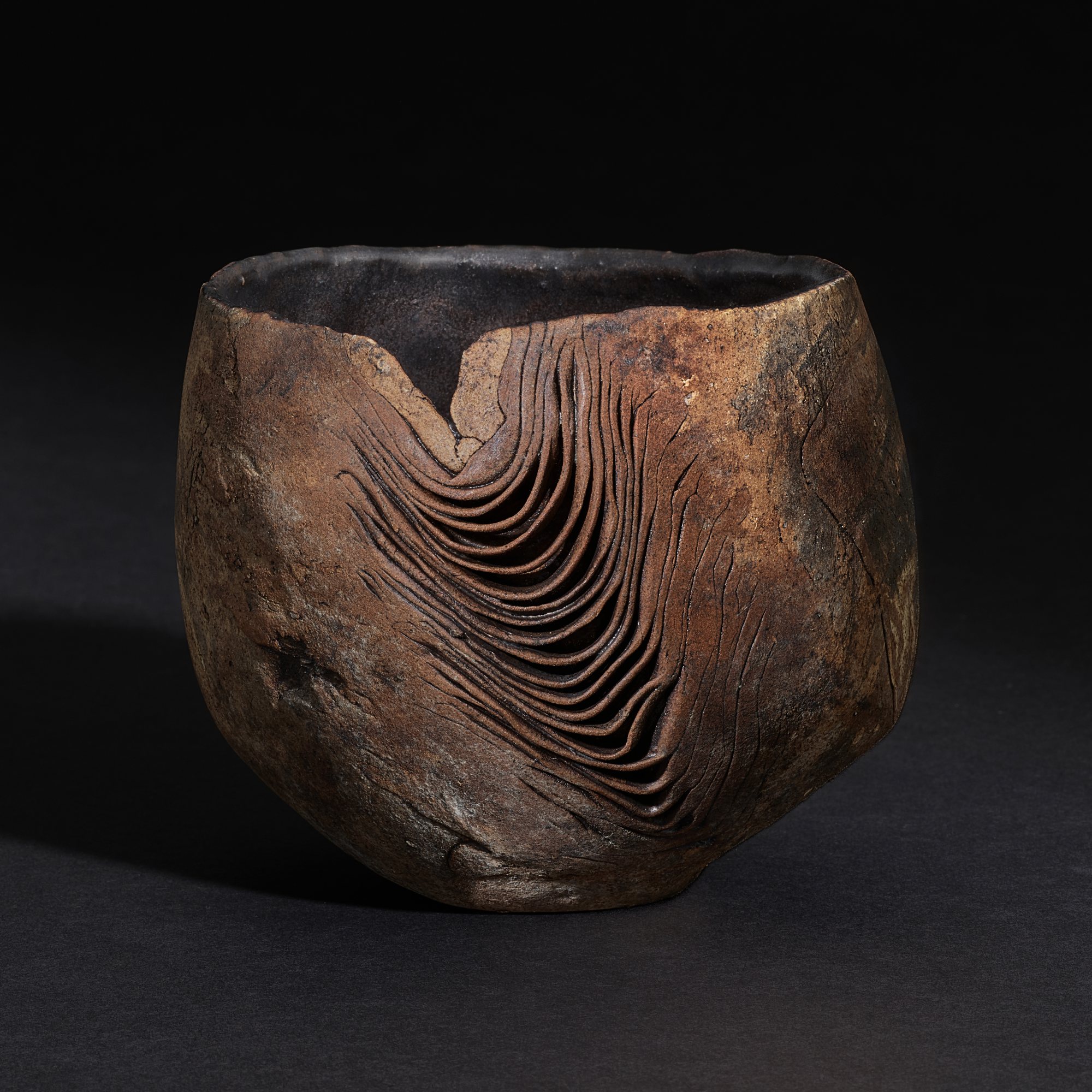 Izumita Yukiya (b. 1966) A layered teabowl 泉田之也 (1966年生) 積層紋茶盌